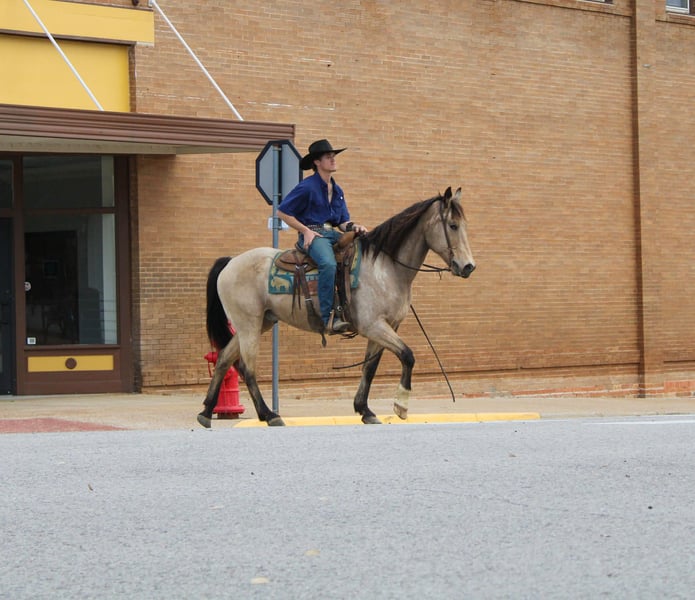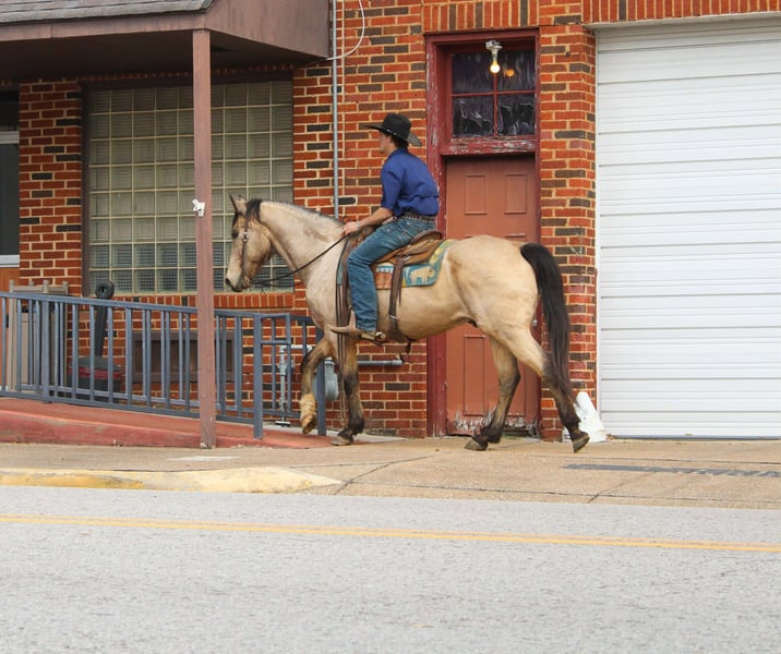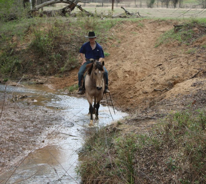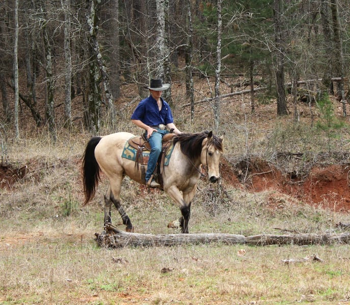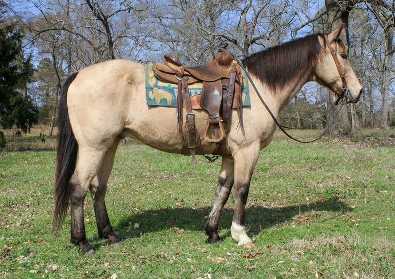 "AVAILABLE ON ONLINE HORSE AUCTION AT www DOT PlatinumEquineAuction DOT com BIDDING OPEN NOW thru SUNDAY | MARCH 8TH! *Final price will be determined on auction site* CONSIGNOR CONTACT INFO: Rileigh Dinges 979-362-0756 LOCATION: Cushing, TX King is a 15 year old buckskin gelding he stands 15 hands tall. He is a super gentle and quiet to be around. He has spent a lot of time on the ranch for all aspects of ranch work, he has been used by the whole family from the little kids to being used to rope and doctor outside. He has also been trail rode all over, he crosses the creeks, bridges, logs and goes anywhere he is asked! King has also been rode in town, he is not spooky and handles new situations very well! If you’re looking for a super nice all around gelding be sure to check him out!