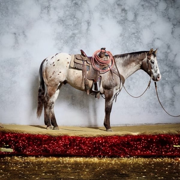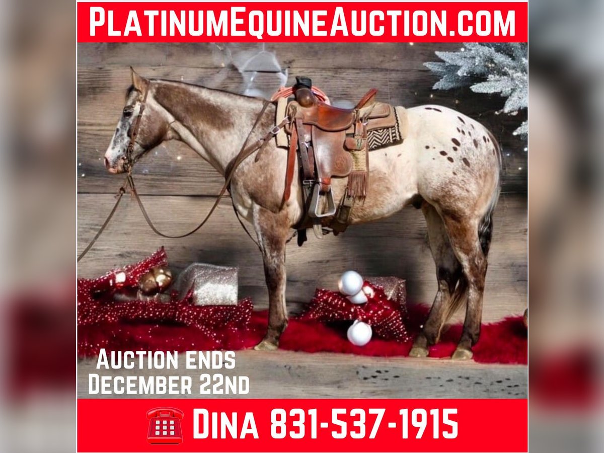 NLINE AUCTION Place your bids at www.PlatinumEquineAuction.com Starting Bid $3500 Auction ends December 22nd, 2024 Need a new saddle? Check out White Rock Saddles on our website or Facebook! Have you been tirelessly searching for that perfectly reliable horse, just in time for Christmas one who embodies the phrase “been there, done that,” and can be trusted time and again to keep your loved ones safe? Look no further than Beetlejuice! This stunning traditional Appaloosa is a 13-year-old, gentle gelding stands a solid 15 hands tall and he’s an exceptional partner ready to embark on countless adventures with you. His calm demeanor makes him ideal for young riders; he’s the type of horse on which parents feel comfortable turning their kids loose on. Whether it’s navigating through water crossings, walking over bridges, or conquering logs in the great outdoors, Beetlejuice handles it all with phenomenal surefootedness. He’ll follow any trail you take him down alone or with friends and has effortlessly mastered obstacles like tires and walkovers. In the arena, he shines bright: picking up leads with grace, stopping beautifully on cue, and backing up smoothly all while being as patient as they come. Traffic? No problem! Cars whizzing by or trains chattering along won’t faze this magnificent boy at all; he’s truly trustworthy in every situation imaginable. With his laid-back personality and array of cool buttons he is a cruiser type horse. Beetlejuice is also an excellent ranch horse ready to help out with everything from branding to sorting cattle. Easy-going doesn’t even begin to describe him; he loads into any trailer effortlessly and greets each grooming session with ease. He is great for the farrier and vet and is up to date on worming and vaccinations. He tacks up easy and hauls anywhere. Handles time off well. Shipping is available anywhere. Please contact Longhorn Ranch Dina 831-537-1915 located in Paicines, CA we look forward to speaking with you regarding this amazing boy.ONLINE AUCTION Place your bids at www.PlatinumEquineAuction.com Starting Bid $3500 Auction ends December 22nd, 2024 Need a new saddle? Check out White Rock Saddles on our website or Facebook!