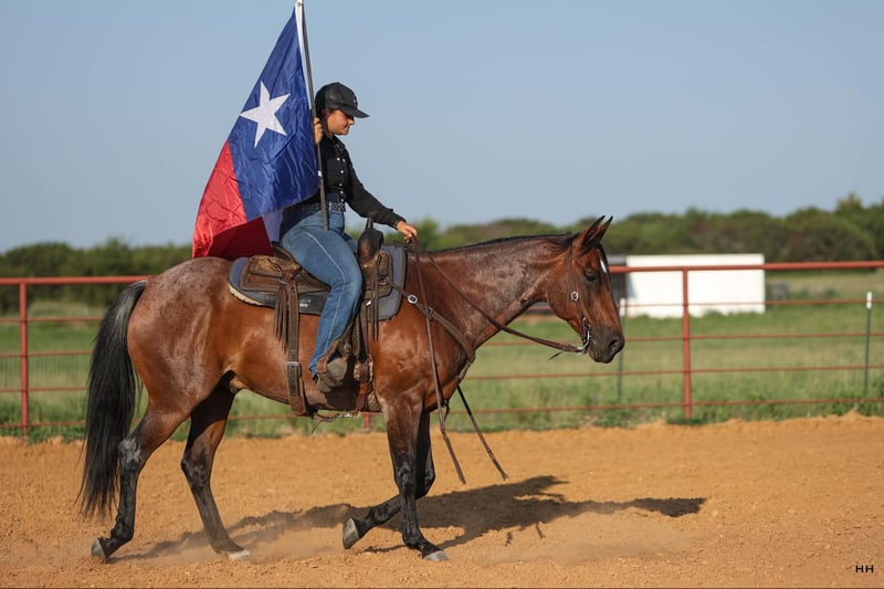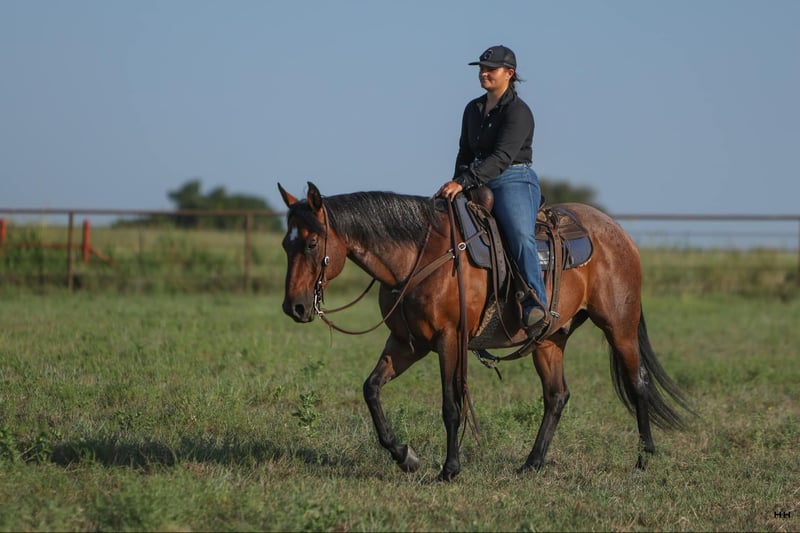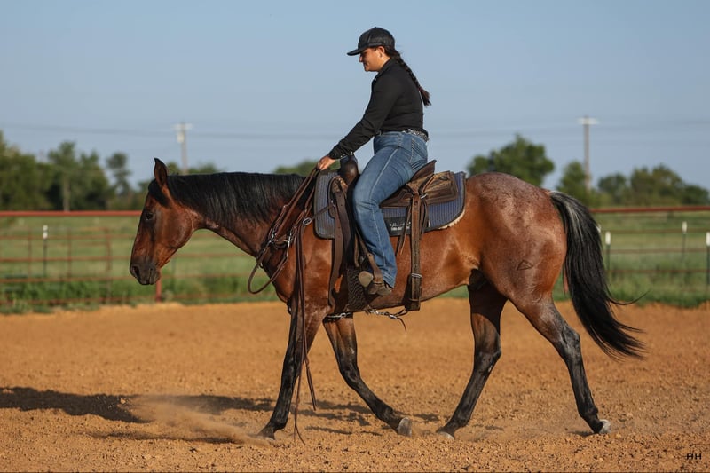ONLINE AUCTION Place your bids at www.PlatinumEquineAuction.com Starting Bid $3500 Auction ends August 25th, 2024 Need a new saddle? Check out White Rock Saddles on our website or Facebook! Dancers Gentleman Aka “Brik” is a 2011 model Registered Quarter Horse gelding. Standing at 15 HH, Brik is a stunning Bay Roan color that will surely get you noticed. Brik is extremely broke and gentle making him an excellent horse for everyone in the family to enjoy. This gelding has truly amazed me with how much he is willing to do even if he wasn’t sure how or what to do. Brik was used as a ranch horse most of his life and has seen many miles under the saddle. He is a “been there done that” type of horse. Brik w/t/l very nicely on a loose rein both directions and all of his gaits are extremely smooth and easy to sit. He is a “more whoa than go” type of gelding which is one of the qualities that makes him suitable for almost any level of rider. He has a very nice stop from all gaits and has a smooth turn around both directions. He is excellent in big open pastures, trails, or in town. He was excellent with traffic in town and didn’t think twice about anything I asked of him. I’ve used Brik to gather calves and brought him through water crossings, there truly aren’t many things I haven’t tried with this gelding! He was absolutely incredible in the arena for me when I took off his bridle. Not very many horses stay almost completely trained when I take the bridle off in my large arena but Brik acted as if nothing had changed. This gelding is broke enough for advanced riders to have a ton of fun on like I myself have had, but he’s smooth, slow, and gentle enough that intermediate and beginner riders will also love him! Brik isn’t just excellent under saddle but on the ground as well. He stands tied nicely at the barn or the trailer to be groomed, saddled, and bathed. I’ve learned he loves baths and usually plays with the water when I give him a chance. He stands nicely to have his feet picked or shod by the farrier. Brik will load on the trailer with ease, he will follow you on or will send on as well as back off on his own. Brik gets along very well with other horses and usually sits lower in the herd. He has recently been seen by my farrier, dentist, and chiropractor and is up to date on those cares. Brik is a remarkable gelding and one I have come to love and call one of my favorites. He is going to be an excellent addition to anyone’s barn as he has been for my own. For more questions and information please reach out, to Sydney with SRS Training and Sales 518-935-8282. He is located in Granbury, TX. I absolutely love talking about this handsome gelding and could go on all day long! ONLINE AUCTION Place your bids at www.PlatinumEquineAuction.com Starting Bid $3500 Auction ends August 25th, 2024 Need a new saddle? Check out White Rock Saddles on our website or Facebook!