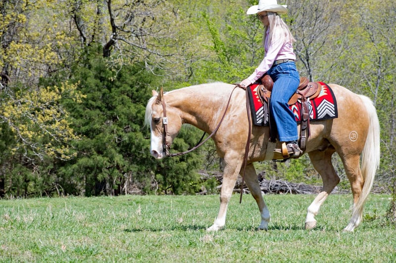 ONLINE AUCTION Place your bids at www.PlatinumEquineAuction.com Starting Bid $3500 Auction ends April 27th, 2025 Need a new saddle? Check out White Rock Saddles on our website or Facebook! Ahh Hezalot Of Cash They say blondes have more fun, well that couldn’t be more true because this palomino gelding is a blast! We call this classy ride Taxi. Standing 15.1 hands, this 14 year old registered AQHA gelding is the true definition of “the perfect package”. He has chrome, shape, substance and a fantastic disposition! He is the ideal size to tote any rider big or small and has a genuine “heart of gold”. Taxi has a great personality with impeccable ground manners and absolutely loves each and every individual he meets. He is a phenomenal trail partner and is not fazed by creeks, logs, ditches, wildlife or any other obstacles you may encounter. Taxi has been to town, seen the bright lights, and experienced most all situations. He has a rocking-chair lope and the most comfortable jog. It doesn’t take a professional to ride Taxi, he respects the bridle well with a one-hand neck rein and responds to leg cues with ease. He has seen all aspects of ranch work and is no stranger to a cow. Taxi has been used to push, gather, sort, and load cattle. He has a fancy handle with a naturally low headset, big sliding stop and flawless roll-back. He is the first to meet you at the gate and is a dream to groom, saddle, bath, clip, load, and shoe. I cannot say enough good things about this gelding, he is truly a joy to own and ride! If a one in a million unicorn is what you’re looking for then Taxi is your guy! Watch his full Youtube video, feel free to reach out with any questions, and arrange a visit or a FaceTime with Taxi! For more info contact Lacey Wilf 501-940-8704 Located in Quitman, AR, we can arrange shipping to any state. ONLINE AUCTION Place your bids at www.PlatinumEquineAuction.com Starting Bid $3500 Auction ends April 27th, 2025 Need a new saddle? Check out White Rock Saddles on our website or Facebook!