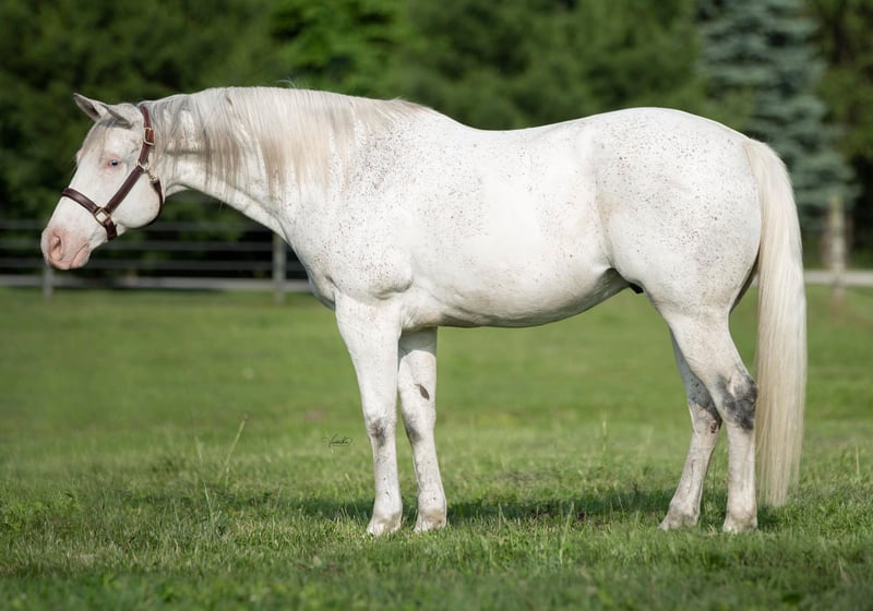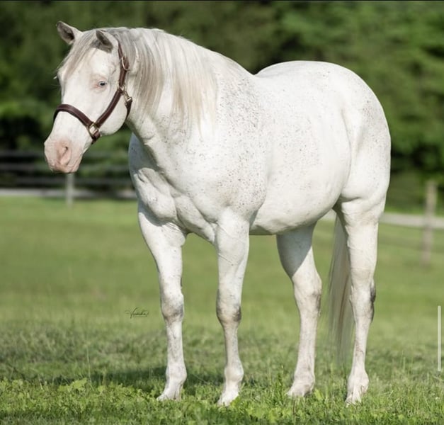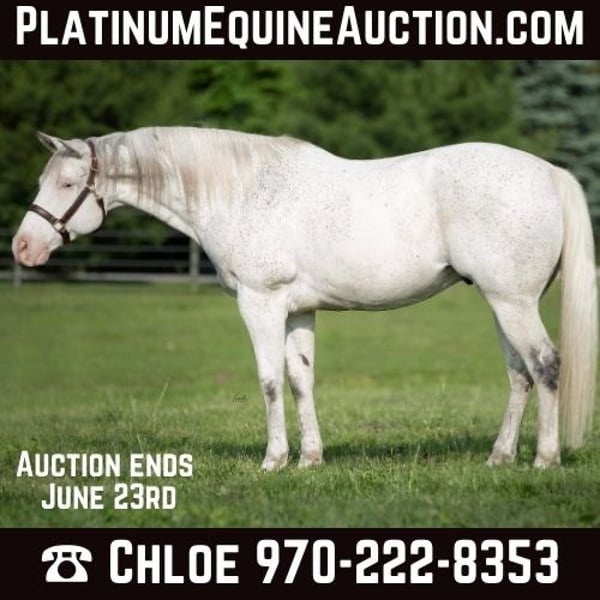 ONLINE AUCTION Place your bids at www.PlatinumEquineAuction.com Starting Bid $3500 Auction ends June 23rd, 2024 Need a new saddle? Check out White Rock Saddles on our website or Facebook! Dallas is a very eye-catching and well built gelding. He is a gray paint with very pretty markings; however, they are only really noticeable when he is wet due to his very light coloring. He also does have one very pretty blue eye and one brown eye. Dallas has a very calm and laid-back personality. He is very motivated to please and is very willing to learn. He has a nice walk, very floaty and pretty trot, and a super smooth canter. Although, he is very sensitive to hand and leg pressure and is not recommended for a beginner. However, with some more time, training, and miles put on him he would make a great kids/beginner horse. He is believed to be partially deaf, but I ride him with almost entirely just voice ques and he does amazing for me, so it definitely does not bother him at all if he is. He is a super sweet horse and has never offered to do anything bad or mean. Dallas has not had professional training to take him in one direction or another, but he would excel at many things. He has the speed, when asked, to make a great contesting horse, but he would also do well on trails or in ranch and/or halter classes. When put in new situations Dallas can get a little confused and nervous if he doesn’t understand what you are asking of him, but with a little time and reassurance he is good to go in no time. Dallas is a super easy keeper and gets along with anybody. You can feed him hay and grain or just hay and he will maintain a healthy weight. In the pasture he is usually in the middle or top hierarchy, but gets along with everyone and usually stays off on his own. He has never been lame or had any health issues. He does well when tied, for baths, trailering, the farrier, ect. He is also always the same horse after letting him sit for a while. Dallas does not have papers, but I do believe it is possible to get them if DNA tests are performed. He is estimated to be 13-14 years old and is 15.1H. Contact Alexzanders Equestrian 970-222-8353. ONLINE AUCTION Place your bids at www.PlatinumEquineAuction.com Starting Bid $3500 Auction ends June 23rd, 2024 Need a new saddle? Check out White Rock Saddles on our website or Facebook!