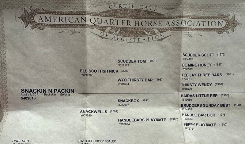 Unter www.AdamsHorseAndMuleCo.com finden Sie weitere Bilder und ein Video. AHAMC ist seit 2005 im Pferdegeschäft tätig und verkauft Pferde über das Internet. Wir haben eine lange Erfolgsbilanz mit hunderten von zufriedenen Kunden. Wir arbeiten hart, um Reiter mit den richtigen Pferden zusammenzubringen und spezialisieren uns auf anfängerfreundliche, familienfreundliche Pferde, die von unserer Familie benutzt und überprüft wurden! Snack Pack ist ein kräftig gebautes Buckskin-Pferd mit einer Größe von 14,3 h. Er ist ein 2011 eingetragener AQHA-Wallach! Snack ist das perfekte Pferd für die ganze Familie! Die Kinder haben stundenlang auf ihm gespielt und er ist sehr tolerant, da er ein Vertrauensbildner ist, langsam und leicht ist seine bevorzugte Geschwindigkeit! Er ist ein Wanderreitpferd deluxe, das die Wege entlang schlendert und nie in Eile ist! Er überquert Bäche, Gräben, Baumstämme und navigiert durch unwegsames, felsiges Gelände. Im Straßenverkehr ist er sicher unterwegs. Er hat einen sehr geschmeidigen Galopp, kann gut anhalten, einen Kreis in beide Richtungen drehen und mit Leichtigkeit rückwärts reiten! Snack kennt sich auf der Ranch gut aus und wenn er gefragt wird, kann er auch die Arbeit erledigen. Snack ist ein selbstbewusstes Pferd auf den Trails und wird die Mannschaft anführen, aber auch alleine losziehen, ohne Probleme! Er ist mit allen Arten von Wildtieren wie Rehen oder Truthähnen oder anderen Tieren wie Kühen oder Hunden in Kontakt gekommen und wird überall hingehen, wo man ihn hinschickt. Er ist viele Meilen in den Bergen von Ost-Kentucky geritten und hat jedes mögliche Hindernis auf dem Weg überwunden. Er geht selbst die steilsten Hänge hinauf oder hinunter, durchquert tiefe Bäche, überquert umgestürzte Bäume und überwindet alle Arten von unwegsamem Gelände und ist dabei immer noch trittsicher. Snack ist nicht zimperlich, hat einen kalten Rücken, krabbelt nicht und weicht nicht aus. Snack wird mit Sicherheit über Jahre hinweg der Liebling der Familie sein!!! Fühlen Sie sich frei, Eric 606-308-2461 mit allen Fragen zu rufen.