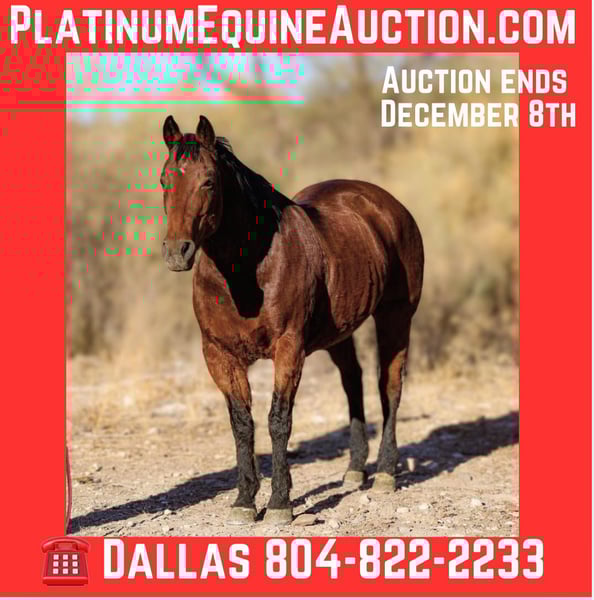 ONLINE AUCTION Place your bids at www.PlatinumEquineAuction.com Starting Bid $3500 Auction ends December 8th, 2024 Need a new saddle? Check out White Rock Saddles on our website or Facebook! Big Chunky is a grade 14 year old gelding standing 15hh. Big Chunky sure does live up to his name, he’s as wide as he is tall! This gorgeous stout made gelding has been a ranch horse is whole life and is not new to a hard days work and hard miles. We’ve done absolutely every job there is to do around the ranch on Big Chunky. If you’re man enough to rope it, Big Chunky will hold it. This big beautiful gelding is not only an absolute blast to work on and ride outside, he’s just as great in the arena! Big Chunky will walk, trot, and lope both directions with ease, as well as neck rein, softly back up, and has a great stop! If you’re looking for a well rounded gelding big enough to pack anyone and anything around, Big Chunky is your man! Great to catch, groom, saddle, bathe, and shoe! Located in Camp Verde, AZ. Call D/C Equine Dallas 804-822-2233 with any questions. ONLINE AUCTION Place your bids at www.PlatinumEquineAuction.com Starting Bid $3500 Auction ends December 8th, 2024 Need a new saddle? Check out White Rock Saddles on our website or Facebook!