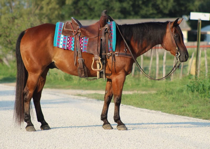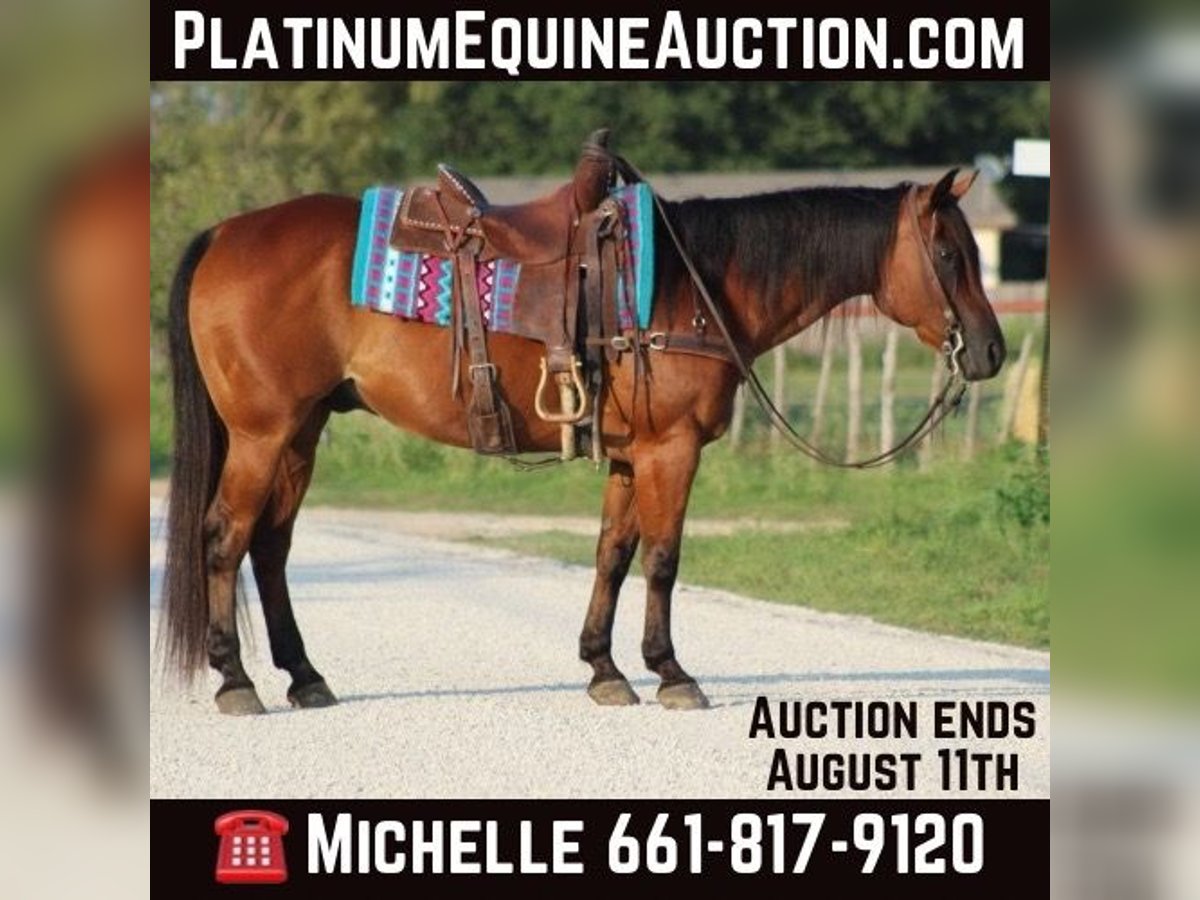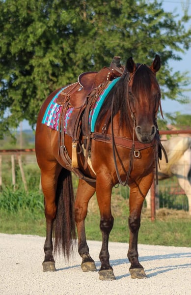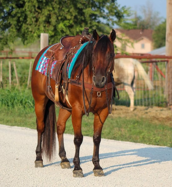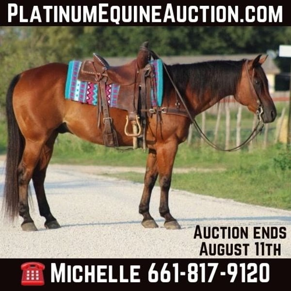 ONLINE AUCTION Place your bids at www.PlatinumEquineAuction.com Starting Bid $3500 Auction ends August 11th, 2024 Need a new saddle? Check out White Rock Saddles on our website or Facebook! If you have been searching for the horse of your dreams , one that’s a true all around horse , there’s never a job too big or small for Chex . He is a GORGEOUS 14 year old bay gelding standing 15 hds tall . He has all the eye appeal in the world with a gorgeous long forelock , long mane and tail that drags the ground . He has been used extensively on the ranch for all the chores from loading trucks to tying one down in the pasture . He always rides out low headed on a loose rein . We have used him to halter break and work colts on , plus pony other horses on . Chex is also a finished rope horse , head , heel and breakaway . You can run 1 or 100 he stays the same never gets hot . He has been rode at the World Series ropings . He leaves the box flat , scores like a rock , runs to the hip every time . He is perfect for any level roper whether your a beginner just learning the ropes or a seasoned pro . If you’re just looking for a trail horse to hit the trails with Chex also very much enjoys that also . He has seen the sights and been hauled all over nothing will rattle him . He is sure footed on even the toughest trails and always takes care of his rider. He will go down the trail all day long on a loose rein and never lift his head above the saddle horn , he will cross logs , bridges , water , tarps , rides out down the busy hwy with semi trucks , and cars flying by with no issues at all . He is used to barking dogs and kids playing all around him . Chex was a TOTAL hit at the Fort Worth Stockyards as he cruised down the famous bricks of Exchange Ave with no bridle on !! He always stays calm , cool and collected! Chex is great to ride in the arena and is very user friendly. He will walk , trot and lope perfect circles . He has great transitions, neck reins , moves off of your leg , picks up the correct leads with no issues at all . We have owned Chex for the last year and can tell you absolutely everything about him . He is one you can leave in the pasture catch up and go for a ride . He is absolutely the sweetest gelding around , he is currently pastured with 3 other geldings , easy to catch and always the first one to meet you at the gate. He has been a great horse to have around and I know his new family will enjoy him as much as we have . He loads and unloads off the trailer , loves baths , stands tied quietly, stands to tack up , also for the farrier. Call us to schedule a time to come try him out or we can set up a FaceTime call. If you need help with transport don’t hesitate to ask we have a list of reputable haulers that can get him safely to your doorstep world wide. Contact M$ Perf. Horses Michelle 661-817-9120 with any questions. Located in Stephenville, TX. ONLINE AUCTION Place your bids at www.PlatinumEquineAuction.com Starting Bid $3500 Auction ends August 11th, 2024 Need a new saddle? Check out White Rock Saddles on our website or Facebook!