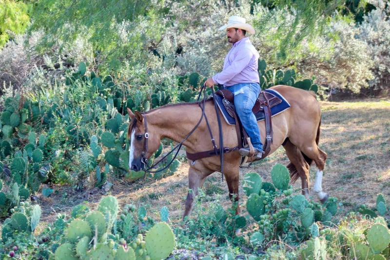 ONLINE AUCTION Place your bids at www.PlatinumEquineAuction.com Starting Bid $3500 Auction ends October 6th, 2024 Need a new saddle? Check out White Rock Saddles on our website or Facebook! If you’re looking for one that is seasoned , tried and true then this guy is the one for you! “Dunny” is a 14 year old gorgeous , stout made red dun gelding standing 15.1 hds tall and has the looks to boot ! This sweet loving gelding has seen the sights and been hauled around the world . He has dabbled in about a little bit of everything he was shown on a college equestrian team for many years and rode by many different riders on the teams . He has a beautiful slow walk , trot and lope and also low headed with a great stop ! He is very user friendly and forgiving. Dunny is awesome out on the trails and will go anywhere you point him! He has been down the famous bricks of Exchange Ave at the Fort Worth Stockyards with crowds of people , traffic and all kinds of commotion and he did it bridle less! He enjoys going down the trails will cross water , rocks , bridges , tarps with no issues at all . Put him in the front , back or middle and he is fine or if you just want to go out on nice rides by yourself Dunny doesn’t mind that either . We recently rode him in our Fourth of July parade and he was a rockstar as always! Dunny is one the whole family can enjoy! He isn’t one that needs rode consistently leave him turned out for months catch him up and go for a ride . He is currently turned out in a pasture with three other geldings he gets along with everyone. Easy to catch , groom , tack up . He loads and unloads with no issues at all . His teeth were just floated , and just got a new set of shoes put on . He’s ready to go to his new forever home . Watch his video and you will fall In love. Contact us to come try him , or we can set up a FaceTime also. If you need help with transport don’t hesitate to ask we have a list of reputable haulers that can get him safely to your doorstep world wide. Located in Stephenville, TX. Contact M $ Performance Horses Michelle 661-817-9120. ONLINE AUCTION Place your bids at www.PlatinumEquineAuction.com Starting Bid $3500 Auction ends October 6th, 2024 Need a new saddle? Check out White Rock Saddles on our website or Facebook!