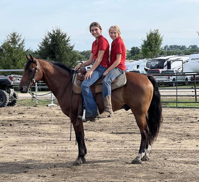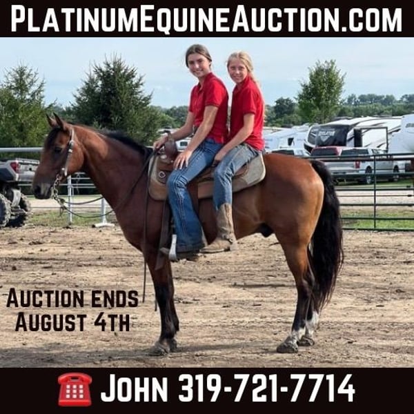 ONLINE AUCTION Place your bids at www.PlatinumEquineAuction.com Starting Bid $3500 Auction ends August 4th, 2024 Brownie is an approximately 13HH, 15 year old, bay gelding pony that is beginner friendly, extremely gentle and good broke. He is quiet and calm. He is slow for the beginners. Adults & Children can ride him! He is not spooky. He never bucks bites or kicks. The last thing he would ever think about doing is going fast, Brownie has been in our lesson program for a long time and suitable for all different levels of riders. He has been rode in parades and out in the pasture he has been rode downtown in heavy traffic. Brownie is used to being around dogs, wildlife and other horses, he loves attention and he is good with his feet. He has been hauled to many different events with no issues. Brownie does not mind being fly sprayed or sprayed with the hose giving a bath, he picks up his feet very well. He has no issues with mud puddles or large bodies of water. He is up-to-date on all worming, shots and vaccinations. Brownie needs no maintenance at all and he is an easy keeper. Brownie can be kept in a stall or on pasture. He is the kind of pony that your kids can get on and be safe and mom and dad can trust him. He’s 100% sound in mind and body. For more info contact John McPhail 319-721-7714 Located in Lisbon, IA. ONLINE AUCTION Place your bids at www.PlatinumEquineAuction.com Starting Bid $3500 Auction ends August 4th, 2024 Need a new saddle? Check out White Rock Saddles on our website or Facebook!