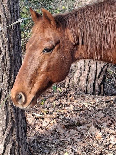 Je mets en vente notre Chicco, que nous appelons Georg, par le biais de cette annonce. Il a 18 ans et mesure environ 154 cm au garrot, bien que je n’aie jamais fait mesurer précisément. Nous avons acheté Georg il y a un peu plus d’un an. Il est très attaché à l’humain, mais malheureusement aussi aux juments. Après mûre réflexion, c’est la raison principale de sa vente. Sur le terrain d’équitation, il montre une formation solide. En extérieur, il se montre très calme en duo ou en groupe. Il ne manifeste de peur que face aux vaches ou aux moutons. Georg présente une légère déviation de l’avant-main gauche, ce qui lui demande un peu plus de temps pour se réchauffer. Il a également un léger prognathisme. En raison de sa conformation, le futur propriétaire devrait éviter de lui faire porter trop de poids en selle. Ses sabots sont solides, le maréchal-ferrant vient toutes les 6 à 8 semaines, et il est régulièrement vu par le vétérinaire ostéopathe. Bien entendu, il est à jour de ses vaccinations et vermifuges. Je recherche une famille aimante pour une fin de vie en troupeau de hongres. Si vous cherchez un hongre câlin, très doux même avec des enfants, et que vous souhaitez lui offrir un nouveau foyer, n’hésitez pas à me contacter. Dans tous les cas, la place prime sur le prix !