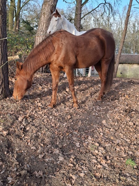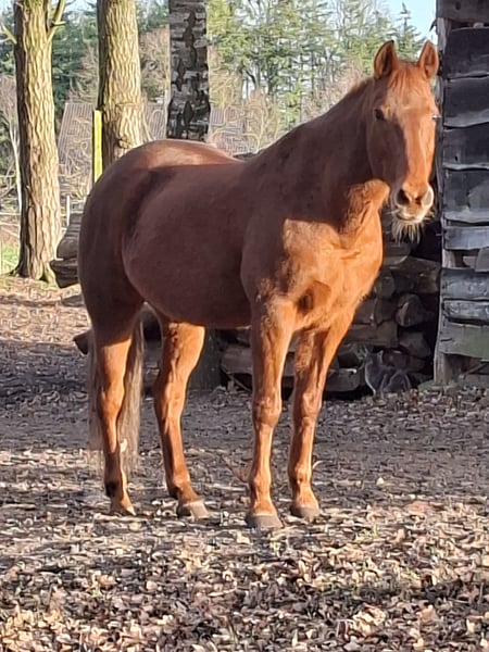 I am offering our handsome gelding, affectionately called Georg, for sale through this listing. He is 18 years old and stands approximately 154 cm at the withers, though I have never measured precisely. We purchased Georg a little over a year ago. He is very affectionate towards people and, unfortunately, also towards mares. After much consideration, this is the main reason for his sale. In the arena, Georg demonstrates solid training. When ridden in the field, he is very well-behaved, whether ridden alone or in a group. He shows some spookiness only when encountering cows or sheep. Georg has a slight misalignment in his front left leg, which means he takes a bit longer to warm up. Additionally, he has a slight overbite. Due to his back, the future owner should avoid putting too much weight into the saddle. His hooves are strong, and the farrier visits every 6-8 weeks. He is regularly seen by a physiotherapist. Naturally, he is vaccinated and dewormed. I am looking for a loving new home for him, ideally in a gelding group. If you are looking for a cuddly gelding, also very gentle with children, and can offer him a new home, please feel free to contact me. Price is negotiable; the well-being of the horse comes first!