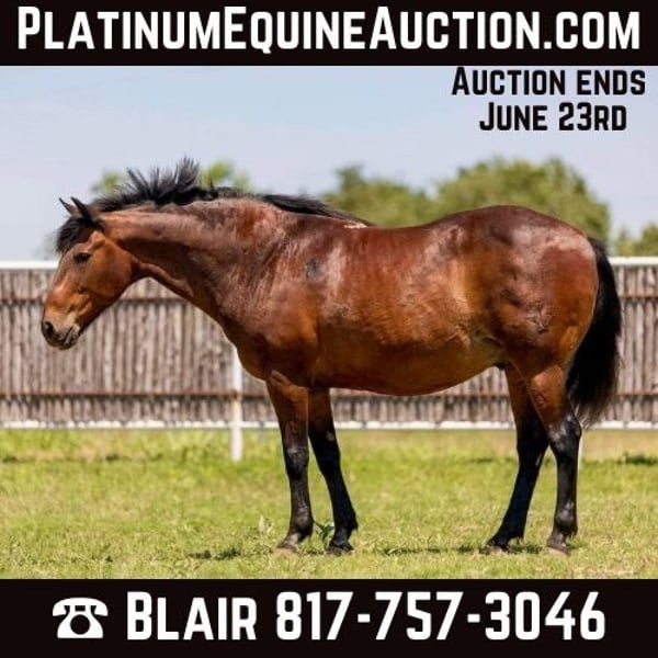 ONLINE AUCTION Place your bids at www.PlatinumEquineAuction.com Starting Bid $3500 Auction ends June 23rd, 2024 Need a new saddle? Check out White Rock Saddles on our website or Facebook! Bishop is a 15.2H, 15 yr old bay Morgan QH cross. If you’re looking for one for the whole family, look no further! Bishop is absolutely as safe as they come and HANDY broke! Even the best of riders will have a blast on this boy and the babies that can hold the reins will be safely toted around. He’s absolutely seen it all, from ranching to trails, to traffic. He’s absolutely not spooky in the slightest and has ZERO buck, bolt, rear or bad habits. Bishop goes exactly where you point him with very little effort. He’s handy broke and neck reins with ease, moves off leg great and stop perfect! He’s as gentle as they come and is the type you can put your grandma on. He’s more whoa than go, but when asked he will switch gaits easily! He’s SUPER comfy, and feels like a big ol couch! Bishop has the sweetest, kind, loving personality. He’s the type of horse every little girl dreams of growing up with. They truly don’t make them more gentle, broke and easy for any level of horseman. Horses like this are not a dime a dozen and are one of the best investments you can make! Bishop will take care of everyone in your family and will give the littles a desire to be a horseman for life. He’s absolutely one of the best baby sitters we’ve have to opportunity to list. He would make the best trail horse, lesson horse, ranch/dude horse to pack the novice riders around, or baby beginner horse for children to learn on. He loads, leads, bathes and ties perfectly and gets along with everyone and everything. He just got his teeth done by an equine dentist and he has a fresh set of shoes on! Bishop will put a smile on your face every time you swing a leg over him. Don’t miss the opportunity to own one of the safest, brokest, well mannered babysitter geldings money can buy! Go to his website page northtexashorsecompany.com/bishop for more pictures and footage! Please call Blair with North Texas Horse Company for more info at 817-757-3046. We are located in Weatherford, TX and can help arrange affordable shipping to anyone!! ONLINE AUCTION Place your bids at www.PlatinumEquineAuction.com Starting Bid $3500 Auction ends June 23rd, 2024 Need a new saddle? Check out White Rock Saddles on our website or Facebook!