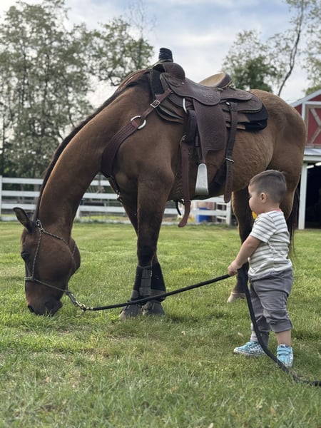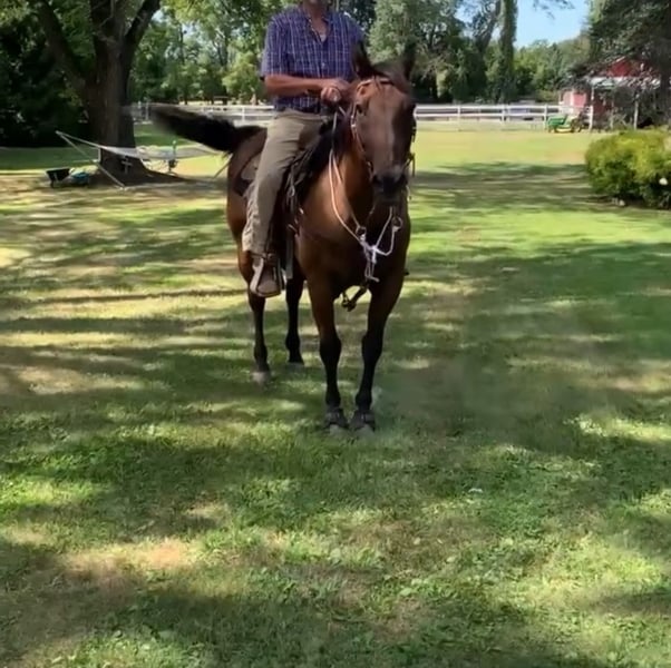 18 yr old Ranch horse , great on trails, ropes the sled in the arena, safe no issues, just a nice horse.