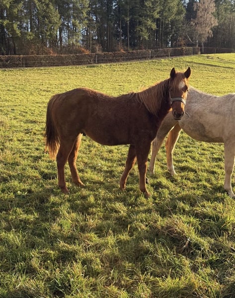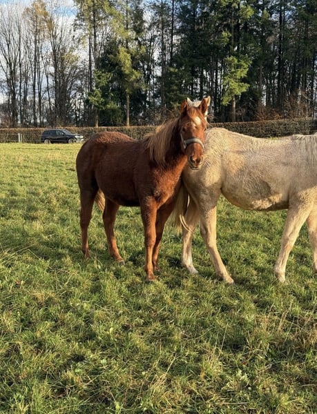 Auf der Suche nach einem gut gezogenen Quarter Horse Wallach mit Potenzial? Zum Verkauf steht ein Quarter Horse Wallach von 07.2024 mit sehr guter Abstammung. Er stammt ab von CC Nite Rider aus Gunner Special Nite und bringt damit beste Voraussetzungen für Freizeit und Sport mit. Er wird voraussichtlich ein Endmaß von ca. 146 cm erreichen und entwickelt sich eher zu einem kräftigen, kompakten Typ. Der junge Wallach ist halfterführig und kennt bereits das angebundene Stehen. Altersentsprechend zeigt er sich manchmal noch etwas stur, ist dabei jedoch stets gut händelbar. Er lebte bisher die meiste Zeit artgerecht in der Herde, ist sehr verträglich im Herdenverband und wächst unter besten Bedingungen auf. Er ist komplett gesund, regelmäßig entwurmt und zeigt sich insgesamt unkompliziert. Beide Eltern können bei uns besichtigt werden. 5 Panel N/N, IMM/N – daher unter Wert abzugeben. Preis 5.900 € VHB Kennenlernen ist nach Absprache in 54689 Daleiden Deutschland möglich. Transport kann organisiert und übernommen werden. Krankheiten oder Allergien sind nicht bekannt. Eine Ankaufsuntersuchung kann selbstverständlich auf Wunsch durchgeführt werden. Für das Kennenlernen oder weitere Besichtigungen berechnen wir 35 €. Dieser Betrag wird beim Kauf selbstverständlich angerechnet. Alle Angaben ohne Gewähr. Preisänderungen vorbehalten. Ein Onlinekauf ist möglich. Für Anfragen oder weitere Informationen erreichen Sie uns unter: Telefon: +49 172 9516779 E Mail: m.horsesforlife@gmail.com Wir freuen uns auf Ihre Kontaktaufnahme!