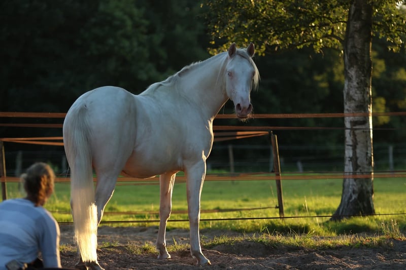 Zum Verkauf steht unser selbest gezogener 2,5 Jähriger Wallach Bacardi. Bacardi besitzt volles Papier der DQHA sowie der AQHA und ist 5 Panel n/n über die Eltern. Er hat die traumfarbe cremello und ist ein wirklicher Hingucker. Er ist natürlich geimpft,entwurmt und gechipt sowie regelmäßig beim Schmied vorgestellt. Er läuft bereits an der longe und geht sicher auf den Anhänger. Auch die grundlegenden Dinge wie führen,putzen etc. macht er artig mit und ist super lernwillig. Auch trecker,Hunde oder andere Dinge auf dem Hof bringen ihn nicht aus dem Konzept. Er wird aufgrund von absolutem Zeitmangel abgegeben und sucht ein 5 Sterne Zuhause in dem er gefordert und gefördert wird. Hier steht er in einer gemischten Herde,ist rangniedrig und kennt Boxen sowie offenstall Haltung. Krank ist er in seinen 2,5 Jahren hier nie gewesen. Von der Größe deckt er auch große Reiter ab da er jetzt aktuell ein Stockmas von 1,49m hat und seine halbgeschwister alle zwischen 1,52m und 1,59m geworden sind. Er wurde frisch der Osteo vorgestellt und war auch dort super brav. Bei Interesse an unserem Schatz meldet euch gerne und lernt ihn kennen. Es lohnt sich.