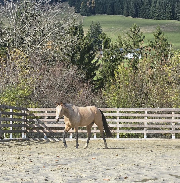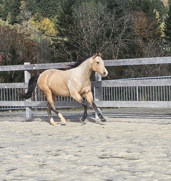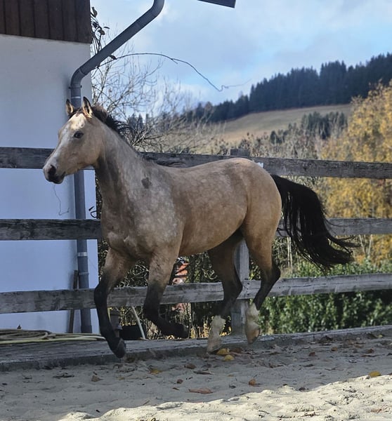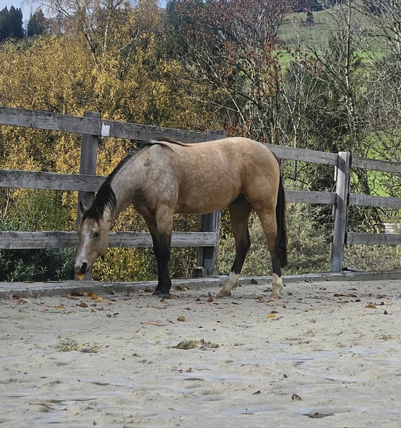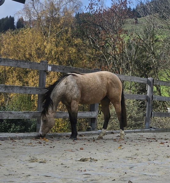 "Wow Voodoo" ist ein absolutes Ausnahmepferd und der perfekte Partner für denjenigen, der ein talentiertes Nachwuchspferd sucht. Mit seinem kräftigen, großrahmigen Körperbau und seinem buckskin farbenden Fell ist er ein absoluter Hingucker... Charakterlich zeigt er sich sehr aufgeschlossenen und menschenbezogenen. Er ist sowohl Gruppen- als auch Boxenhaltung gewöhnt und verhält sich in unserer Herde problemlos fen anderen Pferden gegenüber. Er stammt aus unserer eigenen Zucht und hat mit seiner tollen Abstammung alle Wege offen, Später mal ein tolles Showpferd, oder aber auch ein zuverlässiger Freizeitpartner zu werden... Sein Vater ist "Shiners Voodoo" der unter anderem mehrere Level 4 Open Derby und Futurity Champion Titel gewann und eine Gewinnsumme von über $80,000.00 + erzielte. Auch seine Mutter "Miss G*n N Hollywood" trägt sehr erfolgreiche Namen auf ihrem Papier, unter anderem der legendäre G*nner, Hollywood Dun It und Frozen Sailor. "Voody", wie wir ihn nennen, ist bei der Nrha Germany, Euro und Irha eingezahlt. Er ist ein super unkompliziertes Pferd und sehr gut zu händeln. Bei weiteren Fragen meldet euch gerne bei uns:)