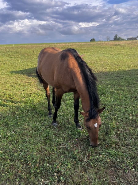 Hongre Quarter Horse de 2 ans, prometteur et bien dans sa tête. Cheval idéal pour le trail et les sorties en extérieur, il se montre très courageux, froid et sans peur face à son environnement (bruit, véhicules, animaux, obstacles naturels). Manipulé régulièrement, proche de l'homme, il apprend vite et montre un excellent mental pour son jeune âge. Convient parfaitement pour un cavalier souhaitant former un cheval polyvalent, sûr et agréable au quotidien. Panels 6 N/N 2 jähriger Quarter Horse Wallach, vielversprechend und ausgeglichen im Charakter. Ideal für Trailreiten und Ausritte im Gelände, absolut nervenstark, mutig und unerschrocken gegenüber seiner Umgebung (Lärm, Fahrzeuge, Tiere, natürliche Hindernisse). Regelmässig im Umgang, menschenbezogen, lernt schnell und zeigt für sein junges Alter ein hervorragendes Temperament. Perfekt für Reiter, die ein vielseitiges, zuverlässiges und angenehmes Pferd selbst ausbilden möchten. Weiter Informationen und Fotos auf Anfrage. 6 panels N/N