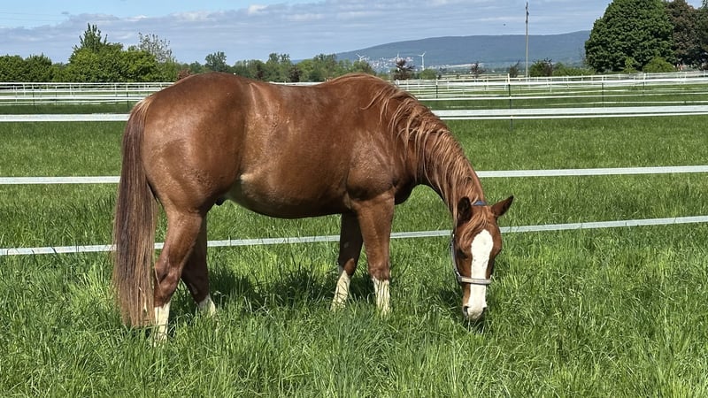 Sorrel con 4x bianco! Liroy è un puledro di un anno super bello e perfettamente costruito. Un eccellente partner per lo sport e il tempo libero con molto potenziale. Ha movimenti molto belli e un'ottima struttura. Di tipo Quarter Horse antico. Ha una genealogia molto interessante e antica. Padre Ricochet Rooster, Gallo del Cielo E madre una Shine N Mister, Shining Spark, Smart Little Lena madre! Iscritto alla NRHA Germania Su richiesta EWU