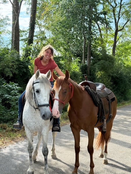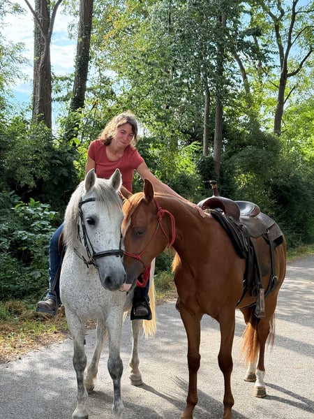 In vendita (per conto di) questo bel puledro castrato QH di 2 anni "RN DIAMOND JOY", soprannominato "Diamond". Attualmente ha un'altezza al garrese di 147 cm e sicuramente crescerà ancora. Le lunghe gambe lo indicano già! Ha movimenti molto belli, è agile e già ora si presenta molto equilibrato al trotto e al galoppo per la sua età. Cammina naturalmente scalzo e attualmente sta imparando l'ABC dei puledri/giovani cavalli. Conosce: - Stare legato - Dare i piedi - Fare la doccia - Essere spazzolato - Sella - Lavoro a terra - Passeggiate - Andare in escursione come cavallo da mano - Maniscalco È molto affettuoso e ha una grande voglia di compiacere. È disponibile per la visione e sicuramente diventerà un partner molto affidabile, sia per lo sport che per il tempo libero. Ha documenti AQHA, test a 7 pannelli e un passaporto equino. Video di lui in movimento possono essere inviati su richiesta.