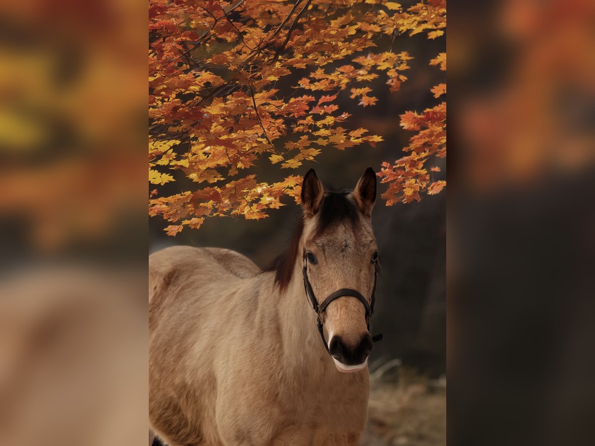 TJ Sparkn Mobster, born on May 2nd, 2023, is a buckskin Quarter Horse gelding with an estimated height of approximately 14.8 hh. He is a true eye-catcher, correctly conformed, compact, and well-muscled. With his exceptional reining pedigree (Spooks Gotta Spark x HF Mobster), he combines willingness to perform and natural talent in a very promising way, offering excellent prospects for a sporting future. Casey was raised appropriately in a herd, experienced both stall and pasture life, and was allowed to enjoy a calm and unhurried young age. He is familiar with veterinary care and farrier visits, regularly dewormed, and is 5-panel n/n. In handling, the gelding is well-behaved, friendly, calm, and sensitive. He interacts honestly and attentively with his handler, tending to be somewhat reserved, and requires a calm, confident owner who can provide him with security and continue his training patiently and fairly. Casey is regularly handled, halter-led, and has good basic gaits. He will soon begin training and has the best prerequisites for a solid, long-term development. He is ideally suited for someone who enjoys gently bringing along a young horse and developing a trusting partnership. He will only be placed in caring, supportive hands.