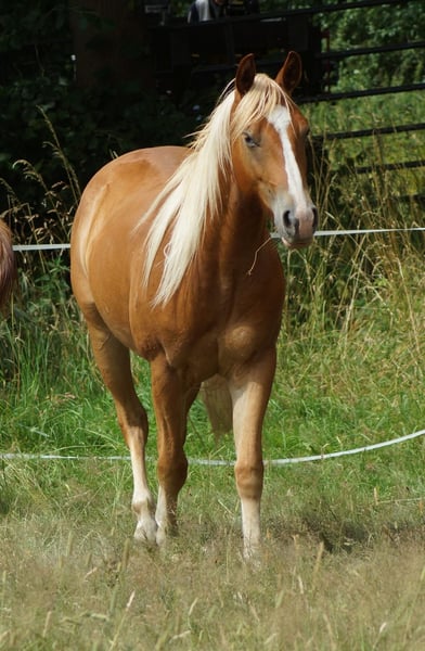 One Shiney Time aka Robbie ist ein wunderschöner QH Wallach von One Shiney Treat einem direkten Shining Spark Sohn. Robbies Mutter ist eineOne Time Pepto Tochter, also feinstes Cuttingblut.. Robbie ist korrekt gebaut, seine Bewegungen sind sehr athletisch und katzenhaft. Er zeigt spielerisch sein Talent für Stopps, Turns und Galloppwechsel. Er ist zur Zeit angeritten und ist sehr sensibel und fein. Sire: One Shiney Treat by Shining Spark / Grays Starlight Dam: Escada Be One Time by One Time Pepto/Shorty Lena 06/2023, 5panel n/n, IMM n/n Unsere Fohlen wachsen im Herdenverbund mit Fohlengesellschaft auf und sind regelmäßig entwurmt und dem Hufschmied vorgestellt. Mehr Info unter www.brallentin-quarterhorse.de