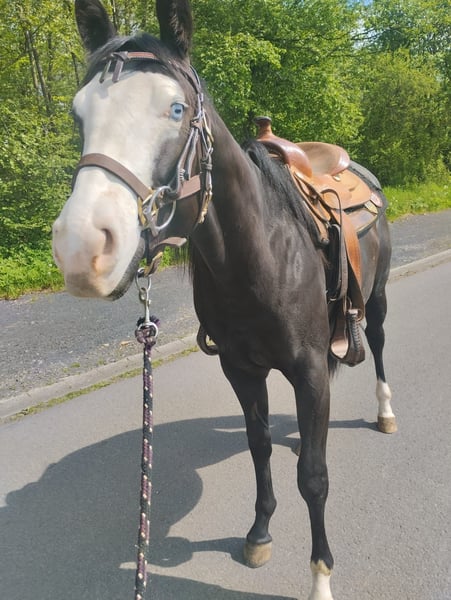 Verkaufe American Quarter Horse Wallach – Perfekt für Freizeit und Hobby! Aus privaten Gründen steht ein wunderschöner American Quarter Horse Wallach, geboren im Jahr 2022. Er ist ein eleganter Rappe mit einem Stockmaß von ca. 150 cm und begeistert durch sein freundliches Wesen und seine ausgeglichene Art. Der Wallach ist ideal für den Freizeitbereich geeignet und zeigt sich im Umgang äußerst brav und lernwillig. Er ist gesund, regelmäßig geimpft und entwurmt, und wurde artgerecht aufgezogen. Bei Interesse oder weiteren Fragen stehe ich Ihnen gerne zur Verfügung. Ein tolles Pferd für alle, die einen zuverlässigen Freizeitbegleiter suchen! Er ist was das reiten betrifft noch roh.kennt aber sattel und damit longiert zu werden.kann aber auf Wunsch noch in seinem jetzigen Stall angeritten werden. Es ist KEIN Notverkauf.Es muss passen den ich möchte nicht das er zum Wanderpokal wird.