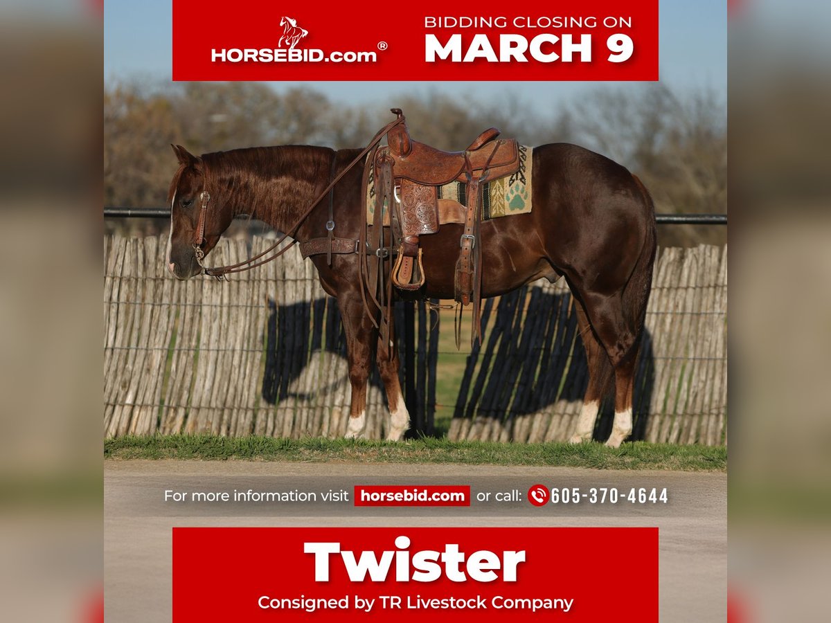 ℳ𝒶𝓇𝒸𝒽 ♦️𝐑𝐈𝐃𝐄𝐑'𝐒 𝐂𝐇𝐎𝐈𝐂𝐄♦️ Happening now thru MONDAY | MARCH 9th - Available EXCLUSIVELY on HorseBid's website! For more details and to register visit: www.Horsebid.com CONSIGNOR CONTACT: TR Livestock Company 605-370-4644 LOCATION: Rusk Texas BREED: AQHA REGISTERED: Yes REGISTERED NAME: Twistin inferno COLOR: Sorrel HEIGHT: 15 hands AGE: 3 GENDER: Gelding Twistin Inferno AKA Twister, a 3 year old AQHA sorrel gelding sired by Inferno Sixty Six (LTE of over $220k)! Twister stands 15 hands tall and is stout! He is clean, straight and correct in every! Twister starter his career under saddle with a reining foundation, he has a nice stop, solid start on spins. He trots and lopes beautiful circles, with a low headset and always soft and willing! He’s smooth, balanced, and honest, with the kind of feel that makes him enjoyable to ride whether you’re polishing things up or just going for a relaxing ride. Twister is definitely standout gelding with the pedigree, mind, and train ability that’s getting harder and harder to come by. He wants to do his job right and takes pride in it, giving you the same try every time you swing a leg over. Twister is very gentle and quiet and is a gentleman on his back or on the ground, he has a in your pocket personality and wants to be your bet friend while still being respectful! He’s excellent to bathe, shoe, tie, and trailer. Out on trails he’s a pleasure to ride, quiet, and steady. He’s good with traffic and all the everyday sights and sounds, taking everything in stride. He’s not just a talented horse with a great pedigree, he is one you look forward to riding every single day. Horses like him don’t come along often, and when they do, they’re usually the ones that stay forever. If you’re looking for a kind, versatile, gelding with an exceptional mind, that can go absolutely any direction be sure to check him out! 📍Twister is located in Rusk Texas, nationwide shipping is available! 🐴PPE’s welcomed at buyers expense! ☎️Please call Rachel with any questions! 605-370-4644