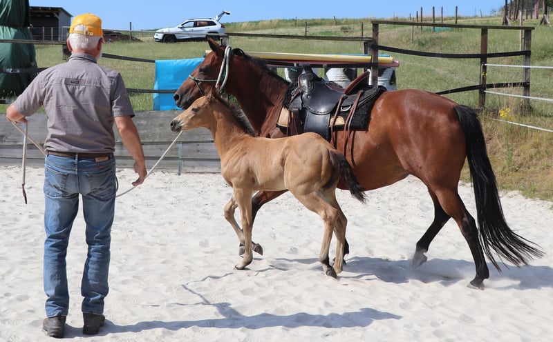 CHIC is correctly built and people-oriented. His paternal lineage is combined with cutting, reining and working cowhorse qualities of his mother's side. He is currently enjoying life in a large pasture. CHEX is eligible to start DQHA & Regions-Futurity. He is carefully prepared by us for his future life with the methods of Natural Horsemanship.