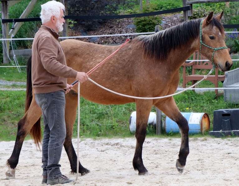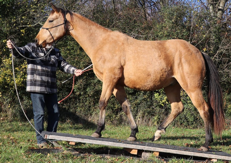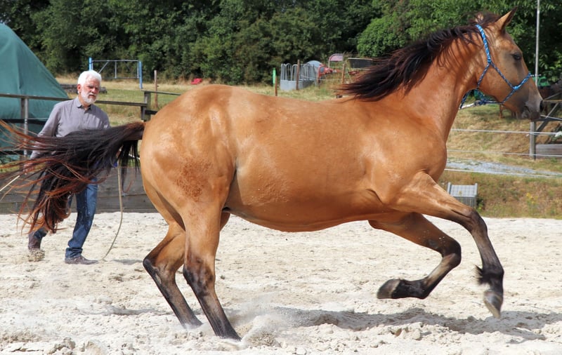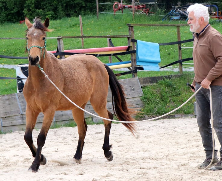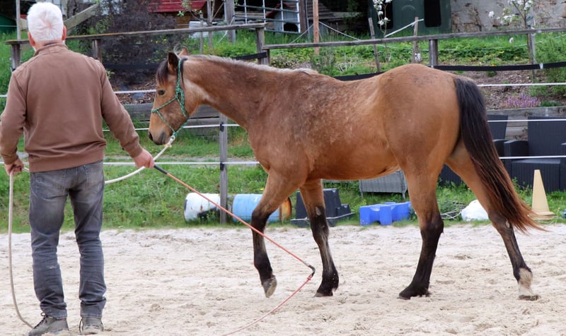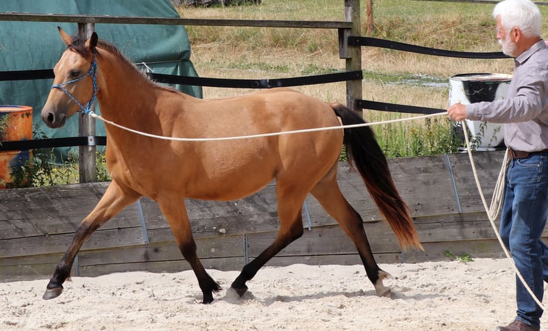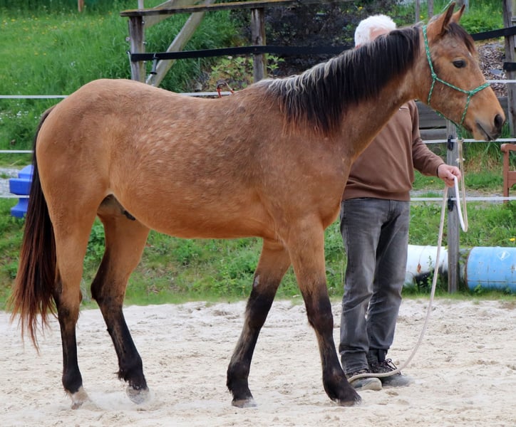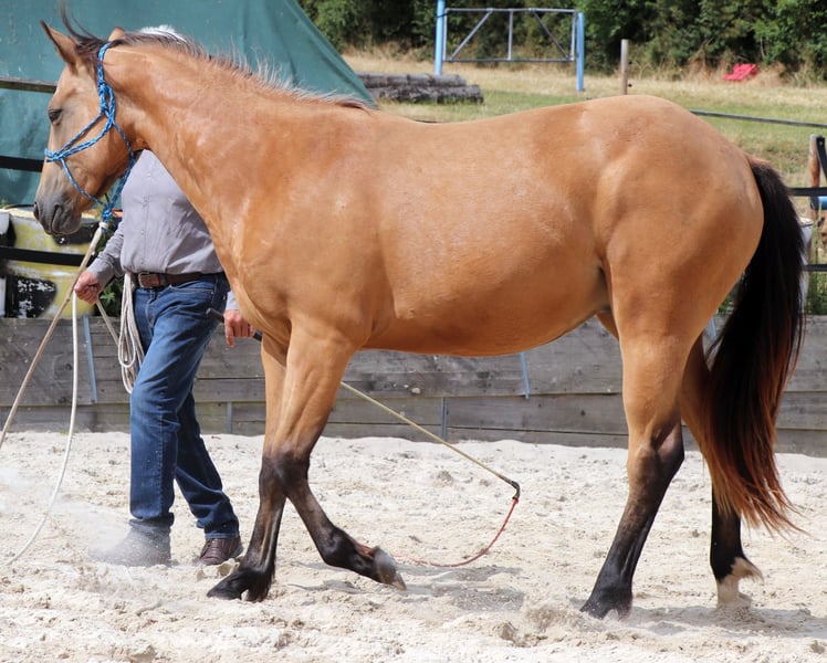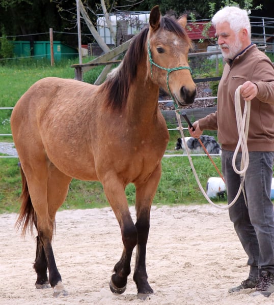 CHIC está correctamente construido y orientado a las personas. Su linaje paterno se combina con las cualidades de caballo vaquero de corte, rienda y trabajo del lado de su madre. Actualmente disfruta de la vida en un gran pasto. CHEX es elegible para iniciar DQHA & Regions-Futurity. Él es cuidadosamente preparado por nosotros para su vida futura con los métodos de la Equitación Natural.