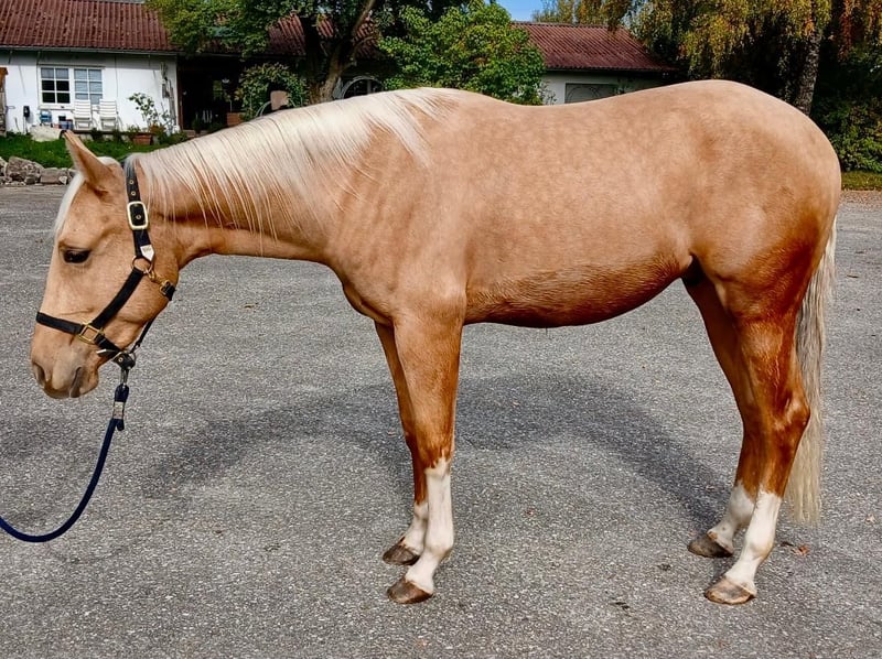 All around 3 jähriger braver Quarter Horse Wallach in der schönen Farbe Palomino sucht seinen Menschen! Barhuf Kennt Box/Koppel Stckm 155 cm Kennt Bodenarbeit Angeritten (Schritt/Trab/Galopp) Eher faul aber motiviert unterm Sattel 5 Pannel/negativ über die Eltern Gesund Bei ernsthaftem Interesse gerne mehr Infos/Videos etc.... unter 0179/4075376