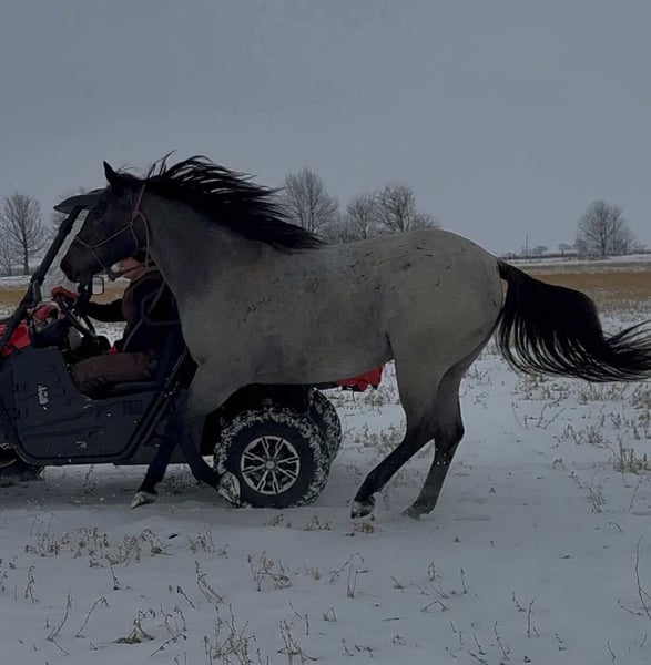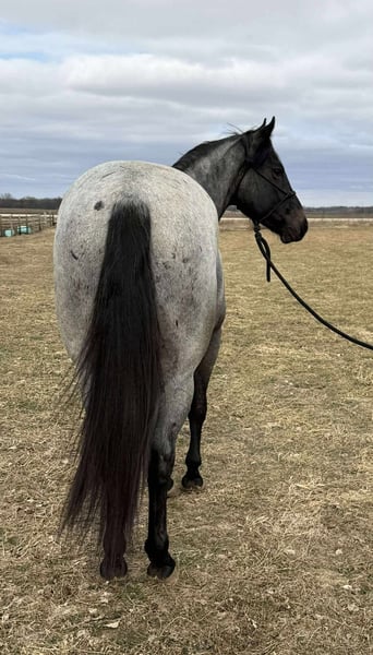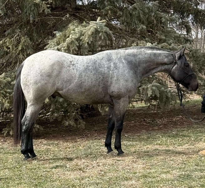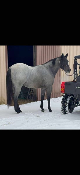 ♦️𝐍𝐄𝐖 𝐘𝐄𝐀𝐑'𝐒 𝑬𝒙𝒕𝒓𝒂𝒗𝒂𝒈𝒂𝒏𝒛𝒂♦️ Happening now thru MONDAY | JANUARY 12th - Available EXCLUSIVELY on HorseBid's website! For more details and to register visit: www.Horsebid.com CONSIGNOR CONTACT: Hooked on Horses 309-229-4249 LOCATION: Princeville il BREED: Quarter/percheron draft cross REGISTERED: No REGISTERED NAME: Stitch COLOR: Blue roan HEIGHT: 15.2 AGE: 3 GENDER: Gelding Stitch May 31, 2023 blue roan gelding His sire is Pocos Star Bartender by Wimpys Poco Star. His dam is a Percheron draft. This colt has a ton of personality, extremely smart, athletic and the best laid-back attitude you could ask for. He stands 15.2 and growing, weighing about 1400 lbs. He’s up to date on everything and passes PPE with flying colors. He’s content inside or outside riding. He will go all day and do anything asked of him. He’s eager to please and never spokes or jumps at new things. I’ve had him on miles of trails, by himself and in groups. He’s had constant hours in the arena as well. He know his manners, he knows his leads, he has all his fundamentals down. Stitch is collected in his gaits and stops on slack. He takes both leads and has smooth transition. He absolutely is a people horse and loves new things. No scars, no blemish and no issues. He loads, ties, saddles great. He rides the same with time off. He is an in your pocket type and easy to catch. I love this colt so much, he definitely is a hugger and will make you smile.