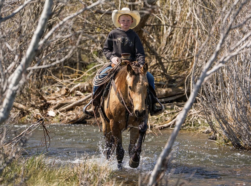▪️▫️◾️𝐭𝐡𝐞 𝑴𝒂𝒚 𝐒𝐞𝐥𝐞𝐜𝐭◾️▫️▪️ Happening now thru MONDAY | MAY 4th - Available EXCLUSIVELY on HorseBid's website! For more details and to register visit: www.Horsebid.com CONSIGNOR CONTACT: Larson Ranch Horses 208-541-3178 LOCATION: St. Anthony, ID BREED: AQHA REGISTERED: Yes REGISTERED NAME: CATS REAL ICHI COLOR: Buckskin HEIGHT: 14.3 AGE: 3 GENDER: Gelding Monte is a beautiful 3-year-old buckskin gelding, a true favorite with a one of a kind mind and disposition that’ll make you fall in love. He has all of the natural beauty that one could hope to find in a lifelong partner and friend. Monte stands 14.3 hh, has all black legs, mane, and tail that contrast against his one of a kind buckskin color. As good looking as he is on the outside, he’s even better on the inside. He has a kind, willing personality and is as “in-your-pocket” as they come while still being respectful — easy to catch and always wants to be around you, which makes him a hard one to want to get rid of. Monte is no stranger when it comes ranch work. We’ve used him ranch roping, gathering, doctoring, and branding calves, and he has handled every job the right way. Very gentle, yet stays broke—soft in the face and through his body with a clean, responsive handle. We’ve used him extensively in the arena. Monte moves off your leg and the rein easily, side passes, two-tracks, and lopes correct circles on the right lead while staying collected. He does it all on a loose rein and has a breath taking stop. He takes care of his riders like a good babysitter. My 8-year-old nephew rides him around and looks forward to, and enjoys riding him. Monte has been exposed and desensitized to many’s different things including kids, cows, tarps, flags, whips, noodles, balls, ropes, etc. He’s definitely one that’ll win over a crowd for his amazing handle and outstanding looks. Whether you’re looking for your next ranch prospect, trail horse, or leisurely ride in the arena, Monte is one that gets compliments everywhere he goes. Horses like this are one of a kind and we couldn’t be more proud to offer him. For more info feel free to reach out at (208)541-3178.