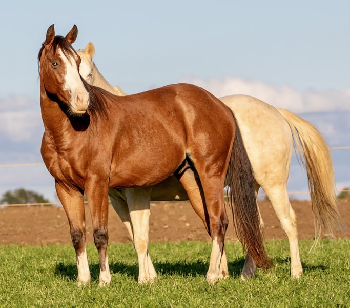 We are offering our beloved American Quarter Horse gelding, "Johnny," born in 2023, in the stunning color "Bay." This young gelding impresses with his promising pedigree and exceptional talent in the reining discipline. He has been backed and demonstrates a strong willingness to learn, along with a solid foundation in basic training. With his correct conformation and elegant appearance, he is truly a head-turner. A horse with great potential that still needs further development and support. Johnny was born here and raised in a large herd. He is familiar with the lively life on a horse farm, including tractors, cattle, and children. Please contact us by phone only at 0172/9084423 for inquiries.