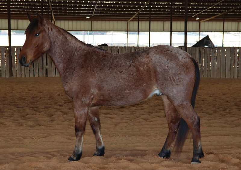 "AVAILABLE ON ONLINE HORSE AUCTION AT www DOT PlatinumEquineAuction DOT com BIDDING OPEN NOW thru SUNDAY | MARCH 8TH! *Final price will be determined on auction site* CONSIGNOR CONTACT INFO: Marco Roux Performance Horses 918-910-1197 LOCATION: Holdenville, OK Bay Roan Gelding 3year old coming 4 stand 14 hands high should finish out to 14.1 14.2 hands. He has roped the sled, worked at the sale barn ,sorted cattle on the ranch ,been on trail rides. This little guy has more to offer and is ready for a home. Stands tied ,loads easy , stands for farrier, good in the wash bay .