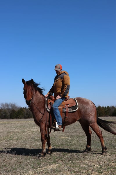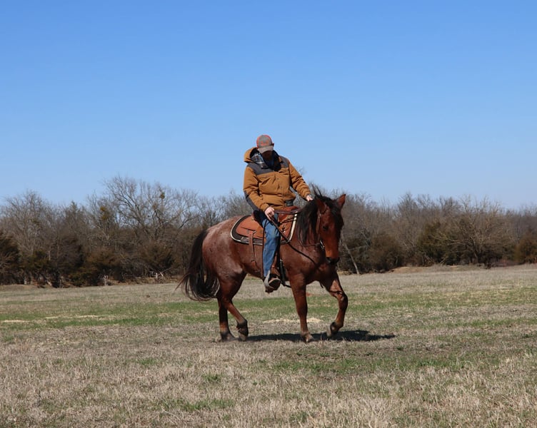 ¡Increíble potro ranchero de 3 años, color alazán roan, de la raza AQHA!