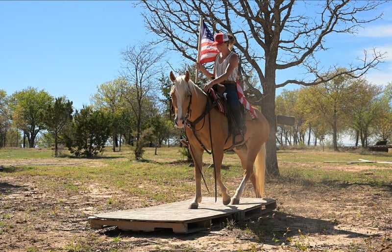 "AVAILABLE ON ONLINE HORSE AUCTION AT www DOT PlatinumEquineAuction DOT com BIDDING OPEN NOW thru SUNDAY | APRIL 19TH! *Final price will be determined on auction site* CONSIGNOR CONTACT INFO: SRM Equine 309-678-7521 LOCATION: Stephenville, TX Buckwheat Man, oh man! It’s our great pleasure to introduce you to WTWE Frenchmen Do, affectionately known around the barn as Buckwheat or even Sweet Buckwheat to some. They don’t come any cuter, flashy, or easy going than Mr Buckwheat! Standing 14 hands even, this guy is the perfect size for both children and adults. His beautiful golden coat and thick, long, white mane and tail make people do double takes EVERYWHERE HE GOES. He is so cute! It’s not just his color that’s catching eyes though. Buckwheat has a sweet little jog and short lope but will also extend when asked. This guy has a beautiful disposition, big hip, soft, kind eye, and a gorgeous head full of brains. That’s the key, right?! His pedigree speaks for itself! As an own son of Cat Man Do and a great grandson of Woody Be Tuff AND Frenchmans Guy, this guy was born to perform! Buckwheat has been such a dream to work with and have in our barn. He’s such an easy horse to be around that it’s easy to get spoiled with him. He stalls well, gets along next to anyone both in stalls and turn out lots, stands tied quiet as a church mouse both at home and out at new places. Vets, baths, saddling, trimming, hauling, none of it is a big deal for Buckwheat. He stands quietly for all of the above as well as loads and unloads easily. Now, let’s get to more of this guys actual resume! Last fall Buckwheat took on a new roll and learned the ins and outs of breakaway roping with Destinee Wofford. In this position his bloodlines really showed up and showed out! He showed us just how quick and athletic he was and impressed many. Staying calm and flat in the box, yet fast and to his spot when asked, Buckwheat showed that he absolutely could have a future in breakaway. Next in his career, Buckwheat learned the barrel pattern. His athleticism really showed here as well, as he picked up on barrels like it was just another day in the office. We love a well rounded horse so most recently Buckwheat has been working on perfecting his fancy handle. He is super easy to ride and has all the buttons one could ask for. Buckwheat stays soft in the bridle, breaks at the pole, picks up his rib cage, pivots on both ends, pretty much any tool you might need, it’s been installed. New environments are no big deal for Buckwheat making him a dream to haul. On the trail he will confidently lead the pack, follow behind, stick in the middle or even ride off by himself if asked. He’s not phased by the tarp, flag, barrels, or any of that odd ball stuff that might be spooky. Buckwheat has been used to pony colts but also doesn’t mind to be ponied himself and does great in both positions. Take the time to watch his video and you’ll get to see just how incredible this guy is. If that doesn’t do it for you, come on out and meet him! We would love to have you! We’re located in Stephenville, Texas. Please give Shelby a call at 309-678-7521 to discuss more about Buckwheat.