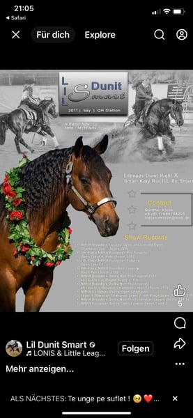 Verkaufe jungen American Quarter Horse Wallach, geb. 2022, in einem eleganten Dunkelbraun. Mit einem Stockmaß von ca. 150 cm ist er perfekt für den Einstieg in den Reining-Sport geeignet. Der Wallach ist gut geritten, aufmerksam und zeigt viel Potenzial für ambitionierte Reiner. Seine solide Grundausbildung und sein freundliches Wesen machen ihn zu einem zuverlässigen Partner für den Freizeit- oder Turnierreiter. Ein vielversprechendes Pferd, das mit der richtigen Förderung sicherlich noch viel erreichen kann. Bei Interesse stehe ich gern für weitere Informationen und eine Besichtigung zur Verfügung.