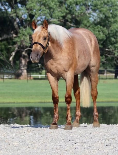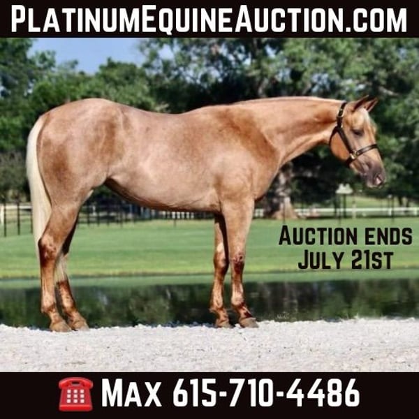 ONLINE AUCTION Place your bids at www.PlatinumEquineAuction.com Starting Bid $3500 Auction ends July 21st, 2024 Need a new saddle? Check out White Rock Saddles on our website or Facebook! If you are in the market for a nice prospect then have a look Dreamin Good Dreams a 14.3h, 2022 Chic Dreamin mare! This is a beautiful, stout palomino filly that’s going to really turn heads. She’s had a nice soft start with putting a reining handle on her and is one that should excel in the ranch versatility classes. She is has had 6 months of professional reining training with Max Morin and is still in training with him in Aubrey, TX. She also has a full set of clean X-rays. This sweet filly is proving to have a super mind, quiet disposition, and pleasant attitude. She’s happy to come out and go to work every day and doesn’t seem to get bothered by much at all. She’ll ride level headed outside around the ranch, cross poles, side pass, drag a log, and will even let you throw a rope from her back. She’s also bred to be cowy for anybody that wants to add that to her resume. Being well put together helps in the fact that this outstanding prospect has never had any soundness issues and does not require any maintenance. She’s an easy keeper with no vices and excellent manners. Finish her up to be that special forever horse you’ve always wanted. Contact Max Morin 615-710-4486 with any questions. Located in Aubrey, TX. ONLINE AUCTION Place your bids at www.PlatinumEquineAuction.com Starting Bid $3500 Auction ends July 21st, 2024 Need a new saddle? Check out White Rock Saddles on our website or Facebook!