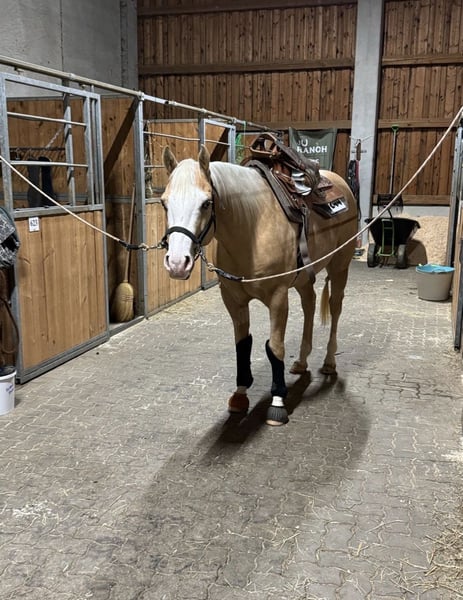 Jimmy ist bereits in allen Gangarten geritten und ein wirklich guter Beweger. Größe zur Zeit 1,50m Er ist immer motiviert bei der Arbeit und konnte auf einem Turnier auch schon Erfahrungen in den Jungpferdeklassen sammeln. Auch im Gelände ist er unerschrocken. Außerdem hat er viel Spaß an Boden-& Freiarbeit. Aktuell steht er in einer Paddockbox mit täglichen Weidegang mit einem anderen Wallach , ich könnte mir für ihn aber sehr gut eine Offenstallhaltung vorstellen, da er sich gerne viel bewegt (24h Weide kennt er auch in der Herde). Ich würde mir für ihn jemanden wünschen der ihn weiter fördert und ihn gerne viel mit Abwechslung arbeitet. Da er unbedingt noch weitere Ausbildung braucht, ist er kein Pferd für Anfänger. Weitere Infos gerne auch telefonisch 0160/94486301