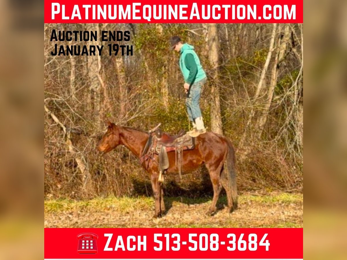 ONLINE AUCTION Place your bids at www.PlatinumEquineAuction.com Starting Bid $3500 Auction ends January 19th, 2025 Need a new saddle? Check out White Rock Saddles on our website or Facebook! Raspberry is a gorgeous chestnut roan quarter horse mare that is 3 years old stands 14.3 hands tall. I got Raspberry off the farm she was born, raised and trained on, which is a very close friend of mine that was doing some cut backs. Raspberry has been professionally trained and handled since birth. She has been rode by riders of all ages and has already proven herself trustworthy and a confidence booster. This is one incredibly kind hearted animal. Raspberry gets along with other livestock and is very easy to handle. Previously to doing the video, Raspberry handnt been rode in 2.5 weeks due to rain and as you’ll see it was no problem. She is so incredibly easy to work with. She she walks on a loose rein, has a smooth jog and And a canter that’s easy to sit, she neck reins, backs up and will even ride with bridle-less. This mare is great on the trail and is traffic safe. She rides out alone or in big groups. Yes I know she’s just 3 years old but come see for yourself, she’s truly better than most 15-20 year old horses. Located in Moscow, OH. Contact Brandenburg Stables Zach 513-508-3684 with any questions. ONLINE AUCTION Place your bids at www.PlatinumEquineAuction.com Starting Bid $3500 Auction ends January 19th, 2025 Need a new saddle? Check out White Rock Saddles on our website or Facebook!