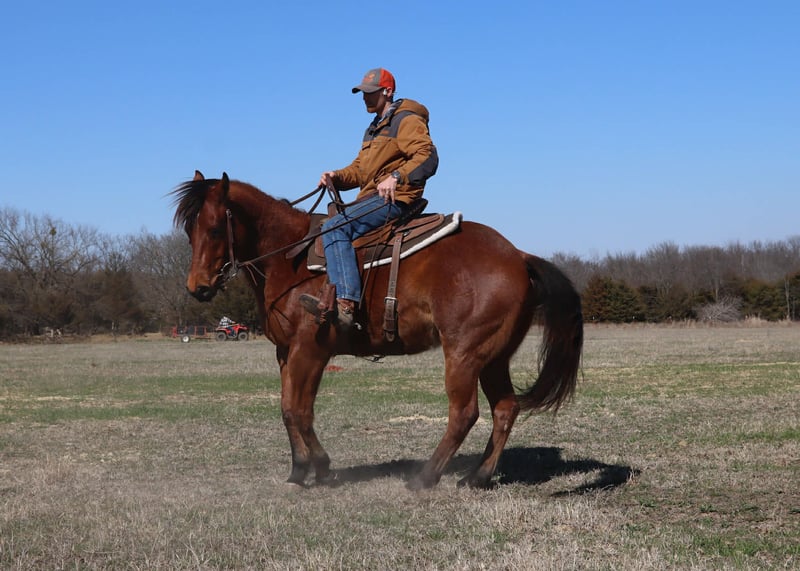 Excelente caballo de rancho de la línea Deluxe, de 3 años, color roan castaño, gelding de AQHA.