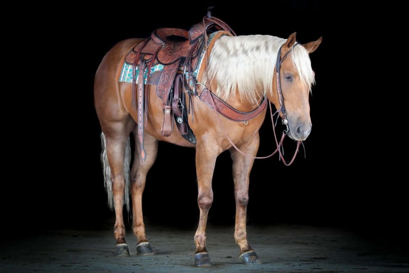 Frito, potro de 4 años, 1,65 m, de color palomino oscuro, semental AQHA