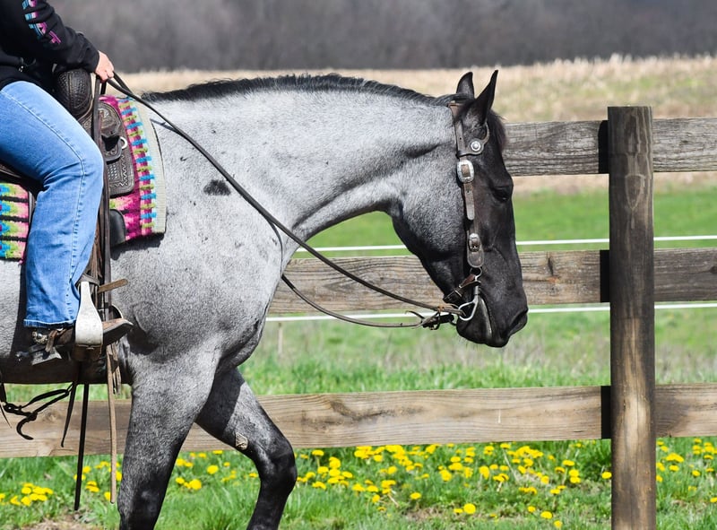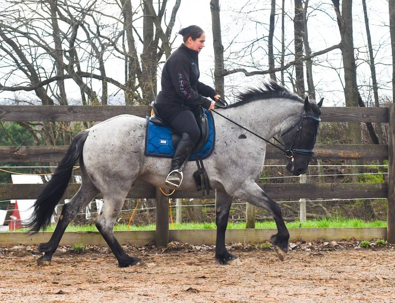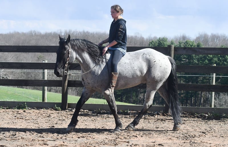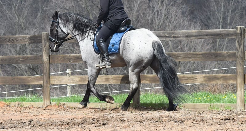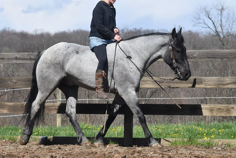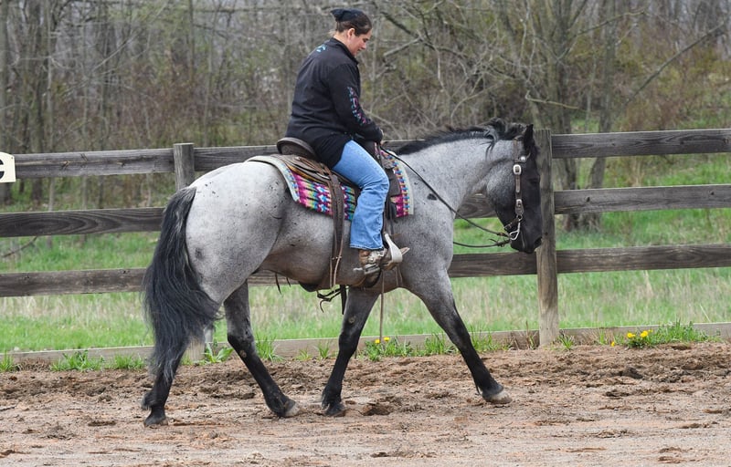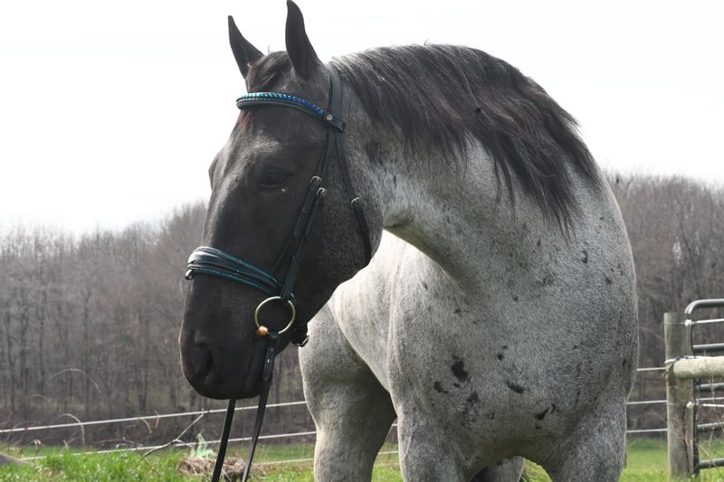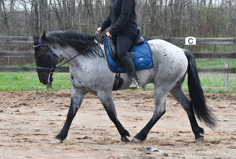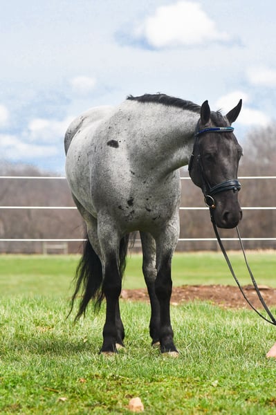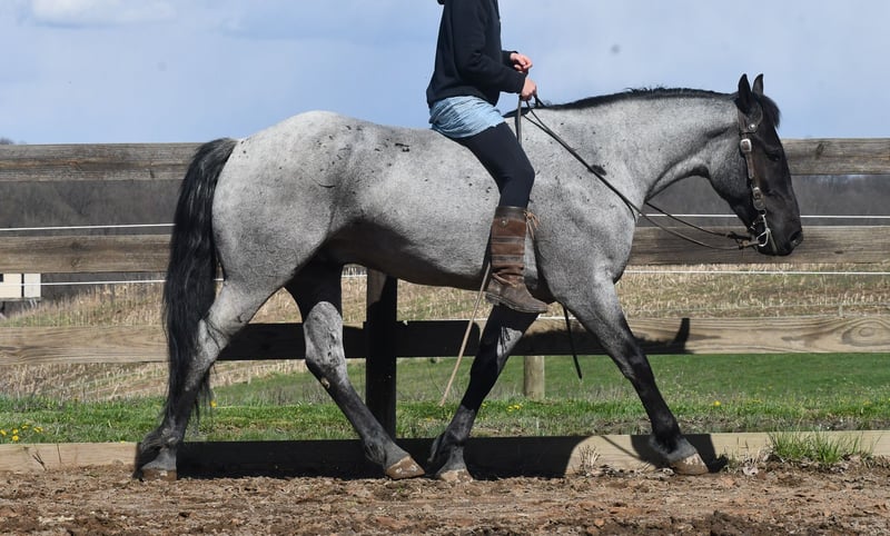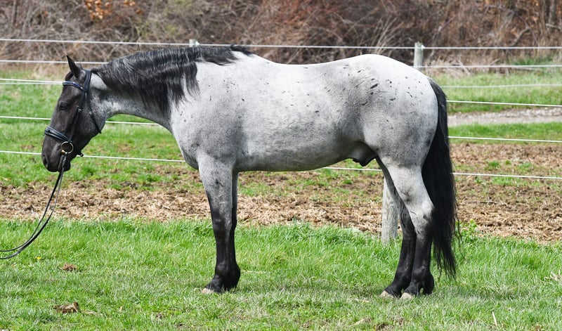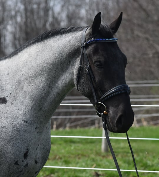 ⚜️𝐭𝐡𝐞 𝓔𝓵𝓲𝓽𝓮 𝐒𝐩𝐫𝐢𝐧𝐠 𝐂𝐥𝐚𝐬𝐬𝐢𝐜⚜️ Happening now thru MONDAY | APRIL 20th - Available EXCLUSIVELY on HorseBid's website! For more details and to register visit: www.Horsebid.com CONSIGNOR CONTACT: Rock Valley Stables 330-600-7877 LOCATION: Strasburg, OH BREED: Quarter Horse/Friesian Cross REGISTERED: No REGISTERED NAME: Tokyo COLOR: Blue Roan HEIGHT: 15 AGE: 4 GENDER: Gelding Tokyo is a wonderful, gentle soul, with great conformation, fancy blue roan coloring, and the prettiest black head. This guy is extremely versatile. He is experienced out on the trail, with things like steep hills, logs, dogs tagging along, and creeks. He will happily walk on a relaxed, loose rein alone, or in a group. No worries if you have to travel down the road a bit to get to the trail, he is fine with that too. In the arena, you can ride him in western tack, on a loose rein. He neck-reins, and moves off leg pressure very well. He has a lovely pivot in either direction, side-passes, and backs. He picks up either lead with ease, all it takes is a kiss and bump with your outside leg. He also has the slow, smooth jog that is a pleasure to sit and ride. He stands at nicely at mounting block while mounting, and walks off quietly after time-off. Tokyo also has dressage training, if that is more your cup of tea. He would be ready to show training level, and is schooling first level. He is nice in the contact, leg yields, and is schooling the shoulder in. We have started to play around with walk to canter transitions. Tokyo loads and trailers well, and rides well off-property in a new environment. He doesn't mind the ball or tarp. We had him over obstacles, and he is cool and confident. He can also be ridden bareback! If you want to put on a special show, he will lay down and sit up for you from the ground or in the saddle. In the barn, he has a friendly, in your pocket personality. He will stand quietly in cross ties without complaint. He is safe to allow kids to help with the grooming, and is used to our dogs running underfoot. Tokyo leads politely, and respects your space. He bathes nicely, and is good for the vet. He will stand for the farrier in cross ties, and shoes very well. He has no history of lameness or illness, and sells 100% sound.