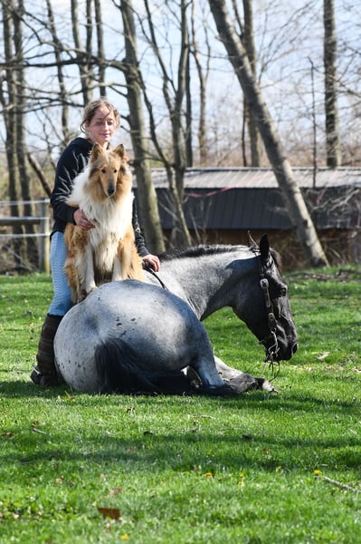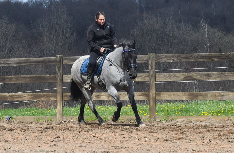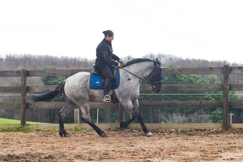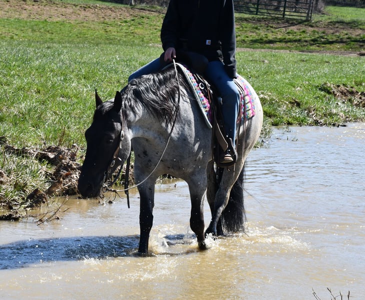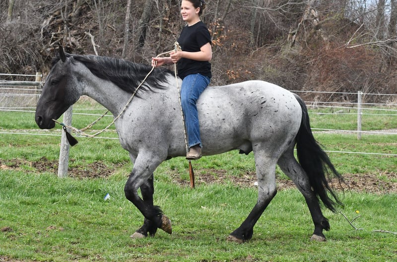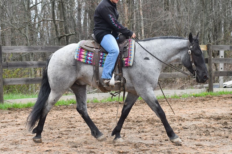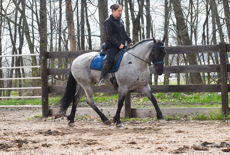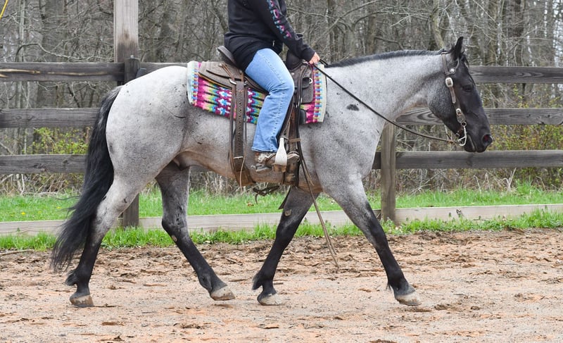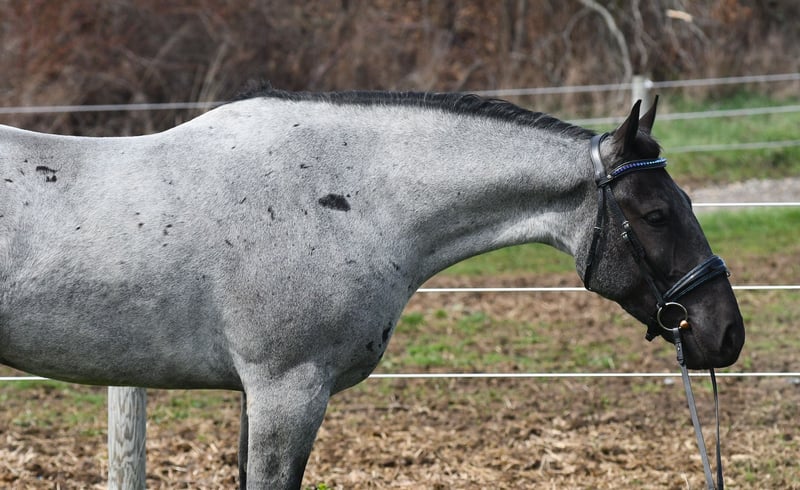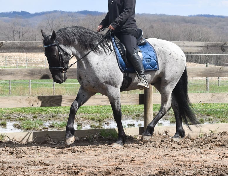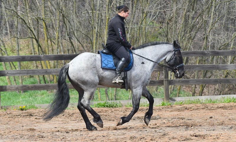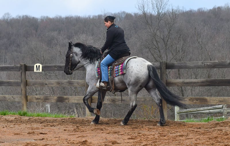 ⚜️𝐭𝐡𝐞 𝓔𝓵𝓲𝓽𝓮 𝐒𝐩𝐫𝐢𝐧𝐠 𝐂𝐥𝐚𝐬𝐬𝐢𝐜⚜️ Happening now thru MONDAY | APRIL 20th - Available EXCLUSIVELY on HorseBid's website! For more details and to register visit: www.Horsebid.com CONSIGNOR CONTACT: Rock Valley Stables 330-600-7877 LOCATION: Strasburg, OH BREED: Quarter Horse/Friesian Cross REGISTERED: No REGISTERED NAME: Tokyo COLOR: Blue Roan HEIGHT: 15 AGE: 4 GENDER: Gelding Tokyo is a wonderful, gentle soul, with great conformation, fancy blue roan coloring, and the prettiest black head. This guy is extremely versatile. He is experienced out on the trail, with things like steep hills, logs, dogs tagging along, and creeks. He will happily walk on a relaxed, loose rein alone, or in a group. No worries if you have to travel down the road a bit to get to the trail, he is fine with that too. In the arena, you can ride him in western tack, on a loose rein. He neck-reins, and moves off leg pressure very well. He has a lovely pivot in either direction, side-passes, and backs. He picks up either lead with ease, all it takes is a kiss and bump with your outside leg. He also has the slow, smooth jog that is a pleasure to sit and ride. He stands at nicely at mounting block while mounting, and walks off quietly after time-off. Tokyo also has dressage training, if that is more your cup of tea. He would be ready to show training level, and is schooling first level. He is nice in the contact, leg yields, and is schooling the shoulder in. We have started to play around with walk to canter transitions. Tokyo loads and trailers well, and rides well off-property in a new environment. He doesn't mind the ball or tarp. We had him over obstacles, and he is cool and confident. He can also be ridden bareback! If you want to put on a special show, he will lay down and sit up for you from the ground or in the saddle. In the barn, he has a friendly, in your pocket personality. He will stand quietly in cross ties without complaint. He is safe to allow kids to help with the grooming, and is used to our dogs running underfoot. Tokyo leads politely, and respects your space. He bathes nicely, and is good for the vet. He will stand for the farrier in cross ties, and shoes very well. He has no history of lameness or illness, and sells 100% sound.