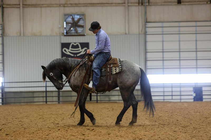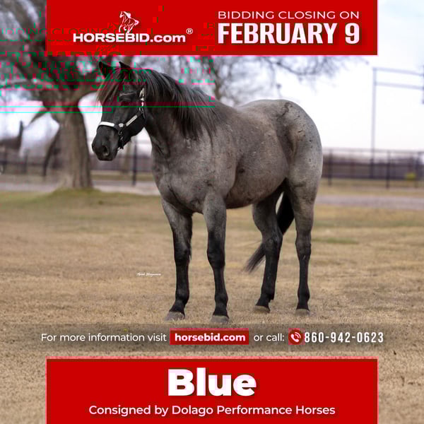 ❤️🔥𝑩𝒆 𝑴𝒊𝒏𝒆 𝐒𝐄𝐋𝐄𝐂𝐓❤️🔥 Happening now thru MONDAY | FEBRUARY 9th - Available EXCLUSIVELY on HorseBid's website! For more details and to register visit: www.Horsebid.com CONSIGNOR CONTACT: Dolago Performance Horses 860-942-0623 LOCATION: Ripley, OK BREED: AQHA REGISTERED: Yes REGISTERED NAME: SLC LILBLUECOWBOY COLOR: Blue roan HEIGHT: 15 AGE: 4 GENDER: Gelding Blue is a 4yr old big, stout, puppy dog personality, 100% sound, no buck or rear. He is a gentle gentle gelding with the mind and ride to do anything you throw at him! He’s done it all without a bat of an eye! Blue does not represent his age he is already a been there done that horse. He is a finished heel horse all around, been ranched on more days than we count, trail rode even more miles, picks up both leads, will lope around on the loosest rein, has a great stop, great turn around, he is more than ready to go in any direction. He’s got all the buttons to go right away into the jackpots as a heel horse who’s easy in the box, trail rides all day long, work and doctor cattle everyday all day, or anything you wish to do that day. Has the athleticism to go the performance route and has the brain to follow. He has as solid of a mind as your retired gelding in your barn! Don’t let his old soul fool you he’ll track a yearling out on the wheat pasture with ease, and then go on a trail ride level headed right after. In the arena he’s as smooth as butter, and as broke as they come!