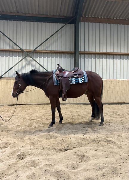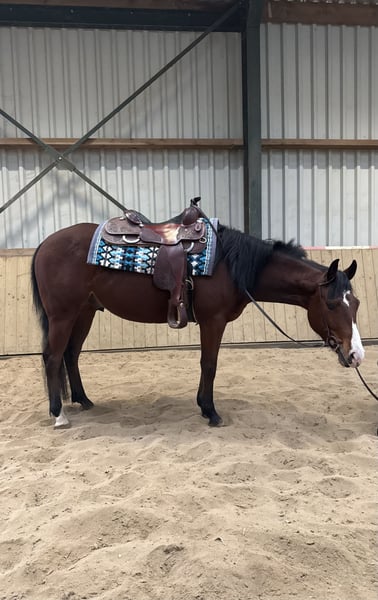 Lieve, sociale en werkwillige 3-jarige AQHA ruin, klaar om zijn carrière te starten. Een toekomstig reining/all-around talent! ➡️ Geboren in mei 2022 ➡️ AQHA geregistreerd Vader: Smart n Sparkin Moeder: Burning Dark ➡️ Lief, sociaal en werkwillig; braaf tijdens wandelingen buiten en goed in de omgang met andere paarden ➡️ Röntgenologisch goedgekeurd zonder bemerkingen aan de benen ➡️ Gezond, gevaccineerd en regelmatig ontwormd ➡️ Geen stalgebreken ➡️ Gaat makkelijk op de trailer ➡️ Zadelmak, nog groen — daarom niet geschikt voor een onervaren ruiter. Klaar om verder opgeleid te worden naar eigen stijl ➡️ Heeft twee kleinschalige shows gelopen in In-Hand rubrieken voor ervaring buitenshuis, en daarbij al meerdere linten behaald