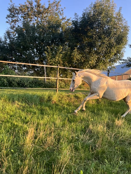 Met pijn in het hart moet ik, vanwege gezondheidsredenen, afscheid nemen van mijn 4-jarige Quarter Horse ruin. Snowy staat momenteel in training en wordt leeftijdsgericht voorzichtig geïntroduceerd in de basisbeginselen. Hij kent de basisprincipes al op de grond en wordt momenteel gericht voorbereid op het berijden. Daarbij toont hij zich leergierig, oplettend en ontwikkelt hij zich voortdurend. Qua karakter is hij een open, nieuwsgierig en dapper ruin. In het dagelijks contact en aan de longeerlijn gedraagt hij zich eerder rustig, ontspannen en aangenaam. Als hij eenmaal vertrouwen heeft, volgt hij zijn mens door elk nieuw avontuur. Hij heeft echter nog leiding en veiligheid nodig en vraagt om een duidelijke houding van zijn begeleider, waardoor hij geen beginnerspaard is en alleen in ervaren handen wordt geplaatst. Snowy kent tot nu toe alleen de paddock- en weidegang en toont zich daarin zeer tevreden en evenwichtig. In de kudde laat hij zich zien als een ranglaag paard dat zeer sociaal is en, zoals gebruikelijk voor zijn leeftijd, nog veel en graag speelt. Gezondheidsmatig is het belangrijk om te vermelden dat hij een blessure aan de achterste linkerpees heeft gehad, die goed genezen is en normaal belast kan worden. Daarnaast heeft hij momenteel een Sakoïd, dat behandeld wordt. Snowy is het perfecte paard voor iemand die plezier heeft in het verder begeleiden en opleiden van een jong paard. Hij beschikt over de beste eigenschappen voor een betrouwbaar recreatiepaard. Bij serieuze interesse hoor ik graag van u.