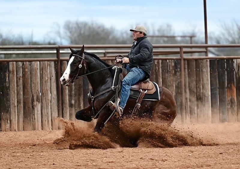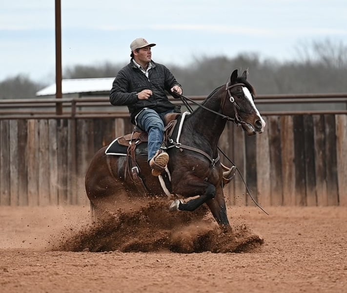𝐍𝐀𝐓𝐄 𝐁𝐀𝐋𝐋𝐄𝐑𝐈𝐍𝐎 𝐇𝐎𝐑𝐒𝐄 𝐂𝐎'𝐬 ★ ℝ𝕀𝔸𝕋𝔸 𝔹𝕌ℂ𝕂𝕃𝔼 ★ 𝑺𝒉𝒐𝒘𝒄𝒂𝒔𝒆 Happening now thru SATURDAY | FEBRUARY 28th - Available EXCLUSIVELY on HorseBid's website! For more details and to register visit: www.Horsebid.com CONSIGNOR CONTACT: Nate Ballerino Horse Co 254-716-9588 LOCATION: Waco , TX BREED: Quarter Horse REGISTERED: Yes REGISTERED NAME: ONEBOONARISING COLOR: Bay HEIGHT: 15.1 AGE: 4 GENDER: Gelding Mayhem sired by BADBOONARISING (LTE $367,101), Mayhem is a talented and versatile gelding. He was started in a cutting program and has all the tools to develop into a big-time rope horse. He has plenty of size to make a head horse and plenty of athleticism in his stops to make a heel horse. Mayhem has been pen roped on extensively and has also been used outside on the ranch. He’s broke, sensible, and able to handle real-world work. Smart, honest, and trainable, he’s ready for the next step in his career. Click Here to view Full Set of X-Rays Location Waco, TX