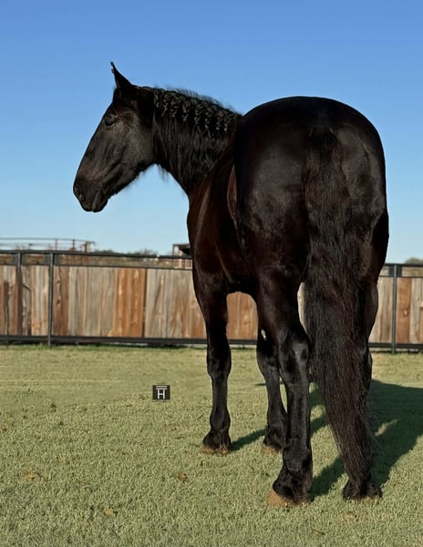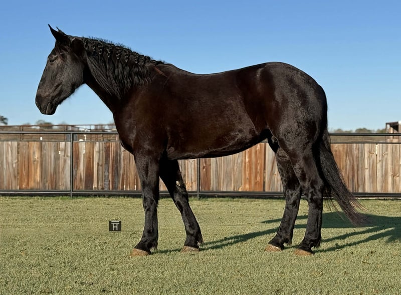 ONLINE AUCTION Place your bids at www.PlatinumEquineAuction.com Starting Bid $3500 Auction ends December 28th, 2025 Need a new saddle? Check out White Rock Saddles on our website or Facebook Smoke is a big, kind, quiet coming 4 year old Percheron gelding standing 17.1 hands tall. He is such a willing and sweet boy with so much potential. Smoke is broke to drive both single and double, is started under English tack and is great out on the trails. In the arena, Smoke is started well in both disciplines with great transitions. He is started over ground poles and small cross rails. He is soft and easy to ride and learns very quickly and easily. Outside, Smoke has a been there done that veteran mentality. He is confident and will go anywhere you point him. He will lead or follow and go whatever pace you like. On the ground, Smoke is sweet and friendly. He is easy to catch and enjoys attention. Smoke is broke to drive both single and double. He is off horse to his half brother, Coal, who is also available if you are interested in them both as a team. Smoke is sound, straight, and clean legged. He is UTD, good for the farrier, pastures well with others or pens alone like a gentleman. FMI call/text Chanel with Holland Horse Company 559-978-6320. Located in Jacksboro, TX. ONLINE AUCTION Place your bids at www.PlatinumEquineAuction.com Starting Bid $3500 Auction ends December 28th, 2025 Need a new saddle? Check out White Rock Saddles on our website or Facebook