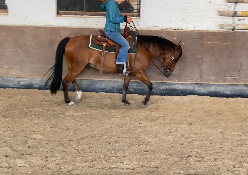HS Kiss My Boon - ein im April 2020 geborener Quarter Horse Wallach in der Farbe Bay mit einem Stockmaß von ca. 145 cm. Er ist bildhübsch, korrekt gebaut, gut bemuskelt und zeigt sich als robuster, unempfindlicher Partner, der barhuf läuft und regelmäßig geimpft sowie entwurmt wurde. Im Umgang ist Ferry ausgesprochen freundlich, menschenbezogen und verschmust. Er ist verspielt, neugierig, aufmerksam und zeigt sich stets interessiert an seiner Umgebung. Dabei ist der Wallach nicht dominant und versteht sich gut mit anderen Pferden, egal ob in der Box, im Aktivstall oder in der Herde. Aufgrund seiner Intelligenz benötigt er jedoch auch geistige Auslastung und sucht einen Menschen, der ihn fördert und fordert. Ferry wurde mit viel Ruhe und Bedacht angeritten und besitzt eine solide Westerngrundausbildung. Er ist geländesicher und kennt auch die Arbeit mit Stangen. In seiner Entwicklung zeigt er sich als Spätzünder, aber mit einer sehr guten Lernbereitschaft. Ferry ist aufgrund seines Alters kein reines Anfängerpferd und sollte daher von einem erfahrenen Reiter weiter ausgebildet oder gefördert werden. Der Wallach sucht ein neues Zuhause als treuer Freizeitbegleiter. HS Kiss My Boon ist ein tolles Pferd mit großem Herzen, das sich einen Menschen wünscht, der ihn mit Geduld, Verständnis und Herz begleitet.