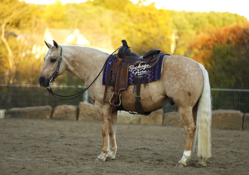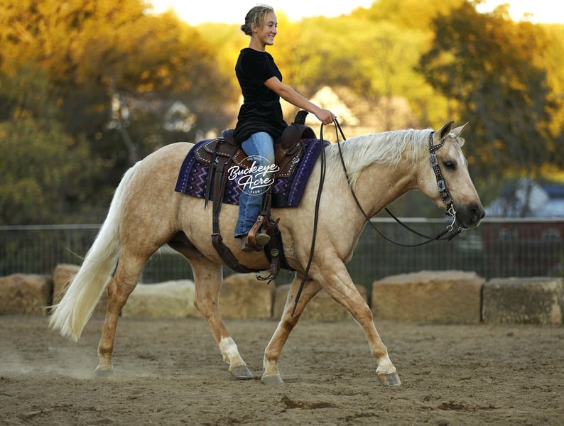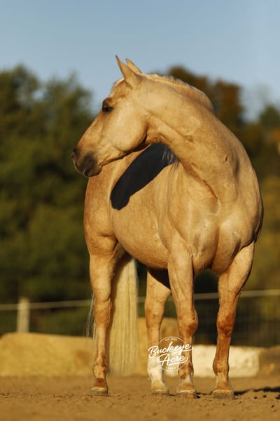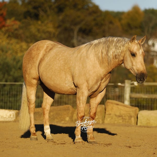 Wow, what an outstanding individual we have to offer you. Honey Boy, as we call him, is truly true to his name. He is a 2021 model AQHA gelding standing 14.1 hands tall, with a golden palomino coat, excellent conformation, and a true puppy dog personality that melts hearts wherever he goes. His pedigree is exceptional, tracing back to Hall of Fame sires Hollywood Dun It and Hollywood Jac 86 on both top and bottom, giving him a combination of talent, intelligence, and a willing-to-please attitude that makes him shine in everything he does. Honey Boy is the ultimate versatile horse. You can show him in ranch classes one day, take him on a trail ride the next, and have your kids ride him the day after. He has been ridden Western, English, and bareback, and he even goes bridle less. He knows his leads, has a smooth lead change, and side passes right up to the mounting block to make getting on effortless. He has very good and smooth gaits, from a relaxed walk and trot to an extended trot and a comfortable lope, making him easy to ride all day. Honey Boy has been ridden in both indoor and outdoor arenas, across miles of trails, uphill and downhill, through creeks, over logs, and even on state roads in traffic, always taking everything in stride with a calm and willing demeanor. Honey Boy is totally safe and dependable for riders of all ages and experience levels, from kids to seniors. He fits that perfect size of 14.1 hands, big enough for adults yet small enough for children to feel confident on. He loves attention, is gentle and well-mannered in the barn, stands quietly for the farrier, and enjoys bath time in the wash bay. You do not have to ride him every day; even once a week or once a month, he keeps his calm, steady, and happy attitude. He is experienced with tarps, jugs, whips, and gunshots, showing his confidence and versatility. Up to date on all vaccinations, deworming, and shoeing, Honey Boy is a ready-to-go partner for any adventure. Whether you’re looking for a dependable trail partner, a future show horse, or a family horse that everyone can enjoy, Honey Boy is the complete package. He has the brains, the talent, the temperament, and the heart to make someone’s next horse unforgettable. Golden inside and out, he is the kind of horse who will bring joy, confidence, and countless memories to every rider lucky enough to have him. If this sounds like the Horse, you have been looking for please reach out to Duane @ 330-231-2324 for more information.