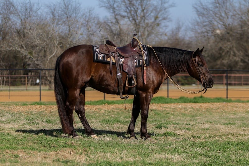 ⚜️𝓽𝓱𝓮 𝐆𝐎𝐋𝐃 𝓢𝓮𝓵𝓮𝓬𝓽⚜️ Happening now thru MONDAY | MARCH 23rd - Available EXCLUSIVELY on HorseBid's website! For more details and to register visit: www.Horsebid.com CONSIGNOR CONTACT: Hailey Hutchison 682-459-7115 LOCATION: Joshua, TX BREED: Quarter Horse REGISTERED: Yes REGISTERED NAME: Mr. Magic COLOR: Brown HEIGHT: 14.2 AGE: 5 GENDER: Gelding Mr. Magic is a 5-year-old , standing 14.2 hands tall, and a stunning brown gelding that will leave an ever lasting impression! Gentle to the core, with an exceptionally kind, willing mind that makes him a joy both in and out of the saddle. With his incredibly affectionate personality and kind soul, he will quickly steal your heart. Fancy broke, honest, steady, safe, dependable and quiet-minded — he’s the kind of gelding everyone searches for, but never finds! Bred, raised, and trained by one family and he was started in their reining program, making me the second owner. I have owned him the last 7 months, and throughly enjoyed every single day with him. Magic is soft, collected, and stays nicely behind the bridle. Magic has easy transitions, smooth gaits, lead changes, good turnarounds and stop. Lopes the prettiest- steady circles in the arena, handles the ball, flag, and tarp with ease. English, western, bareback, single, or double — he takes care of his rider every step of the way. Magic has been hauled and exposed to a variety of atmospheres including the Fort Worth Stockyards, downtown streets, parks, ropings, and miles of trails and pasture riding. Laid back disposition and remains calm, steady, and reliable wherever you take him. Magic will make a wonderful addition to any family! Would excel in the Versatility Ranch Horse classes, or simply enjoy him out on the trails. No matter what you decided to do with him, he will make you happy. It is difficult to describe how truly wonderful Magic is, I personally invite everyone out to meet him for yourself. Sells sound and up to date on coggins, dental, farrier, and deworming.