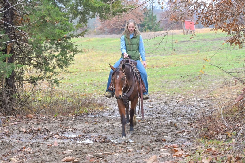 🎄𝐓𝐇𝐄 𝑯𝒐𝒍𝒊𝒅𝒂𝒚 𝐂𝐋𝐀𝐒𝐒𝐈𝐂🎄 Happening now thru MONDAY | DECEMBER 15th - Available EXCLUSIVELY on HorseBid's website! For more details and to register visit: www.Horsebid.com CONSIGNOR CONTACT: D&M Horse Training 660-777-3455 LOCATION: Keytesville, MO BREED: Quarter Horse REGISTERED: Yes REGISTERED NAME: Freckles Superstar COLOR: Bay HEIGHT: 14.2 AGE: 4 GENDER: Gelding Safe, sound, and backed by a 10-day guarantee! Freckles is a very quiet gelding that has been a pleasure to train. He is a fantastic trail horse and is a great fit for the entire family. If you can hold the reins, you can ride freckles! Above all, he is safe and takes care of his rider. You can expect an honest ride from him every time you step into the saddle, even after extended time off. Freckles has been used to trail ride and has been used to pasture rope. He has been in my program for over 5 months, where he has been given periods of extended time off. We are confident in his training and love his disposition. Freckles' manners are excellent whether you are on the ground or in the saddle. He truly aims to please and is a pleasure to be around. Freckles lopes nice circles, correctly taking his leads on cue. He has a nice stop, and is very soft in the bridle with a true one-handed neck rein. He will side pass, work a gate, cross downed timber, walk through water without hesitation or avoidance, and has great agility when maneuvering in mud or uneven footing. He is used to cattle, small livestock, other horses, small pets, children, traffic, even farm equipment and semis! Freckles is the type that is more whoa than go; but if you ask him, he is willing to work for you. With more training, he has all of the ability to be a low-level heel horse. Our favorite thing about him is how genuine, dependable and easy going he is! During his photo session, we were able to do everything without a halter or string on him - he is that honest. Freckles is easy to shoe, easy to bathe, and stands quietly to be braided/groomed and tacked, loads and hauls easily, and will back out of a trailer. When turned out, he gets along well whether he is alone or with pasture mates. Freckles also stalls well. He is fairly easy to catch when he is turned out and is very easy to catch with feed. He is absolutely safe for any age or level of rider! Freckles comes with a 10-day guarantee, because we are confident that you will love him. We are more than happy to help you arrange a pre-purchase exam if needed. If interested in meeting Freckles or if you have any questions prior to the auction ending, please call Dannie at 660-777-3455.